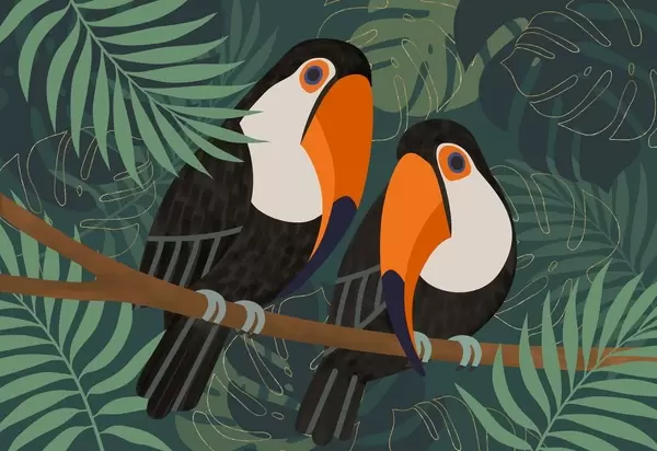 Фотошпалери пара туканів на гілці в афро-стилі w05239