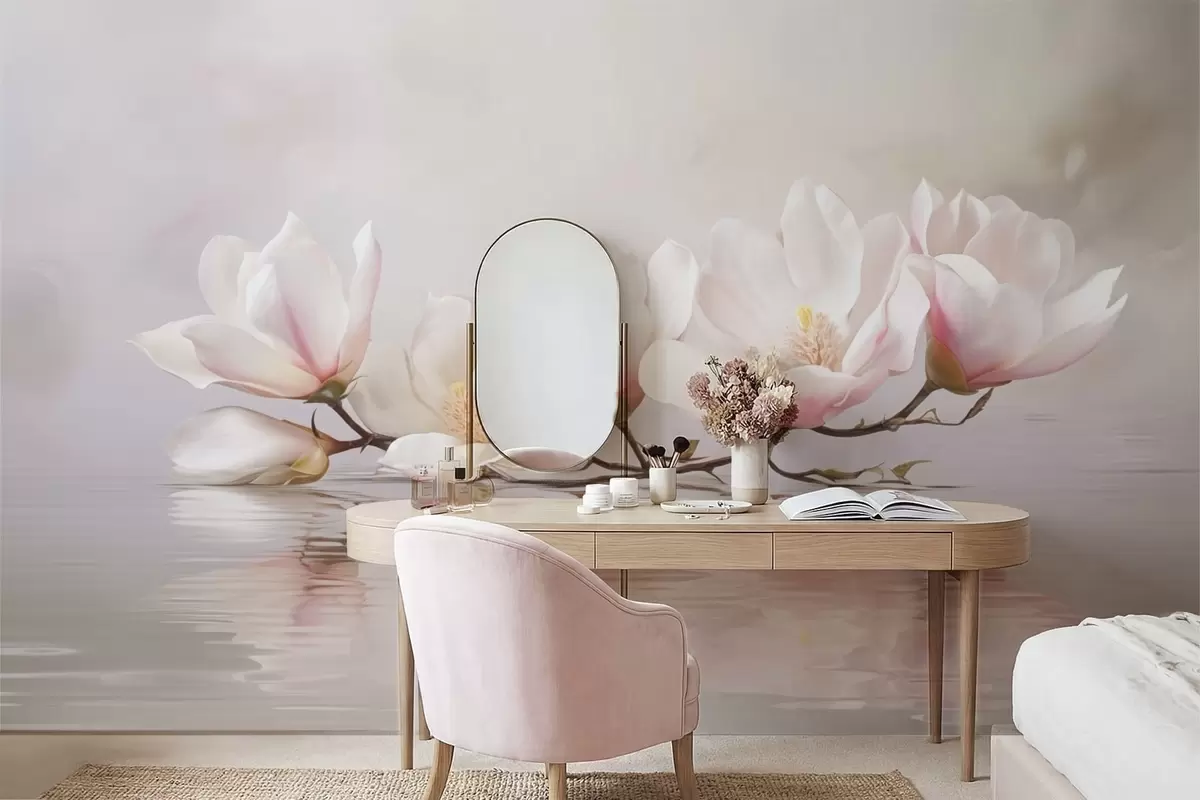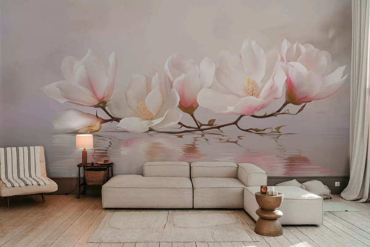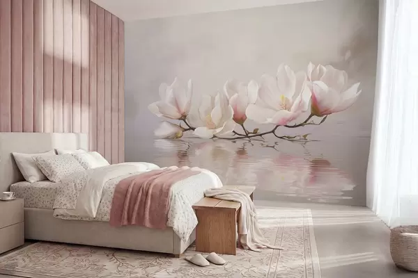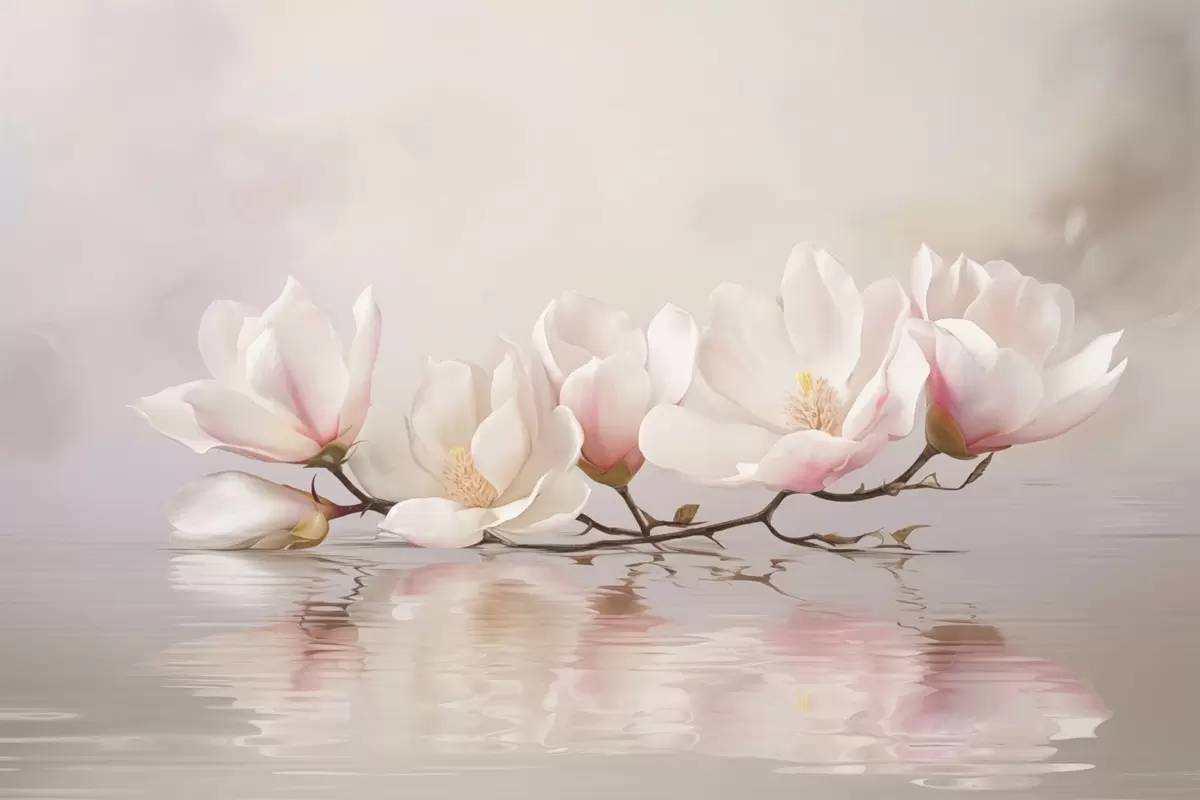Фотошпалери Гілка магнолії з квітами над спокійним віддзеркаленням води w05353v1