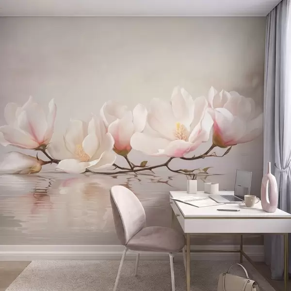 Фотошпалери Гілка магнолії з квітами над спокійним віддзеркаленням води w05353v1