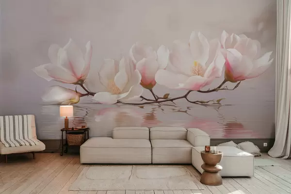 Фотошпалери Гілка магнолії з квітами над спокійним віддзеркаленням води w05353v1