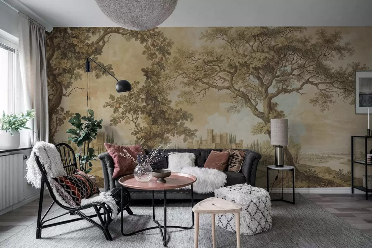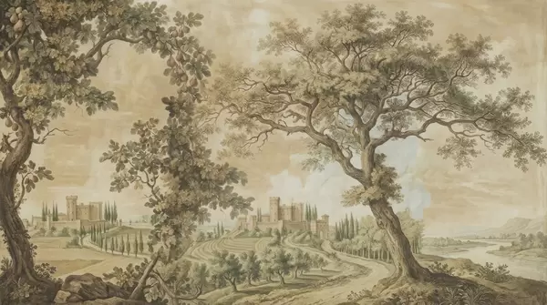 Фотошпалери Пасторальний пейзаж у вишитому стилі w05359