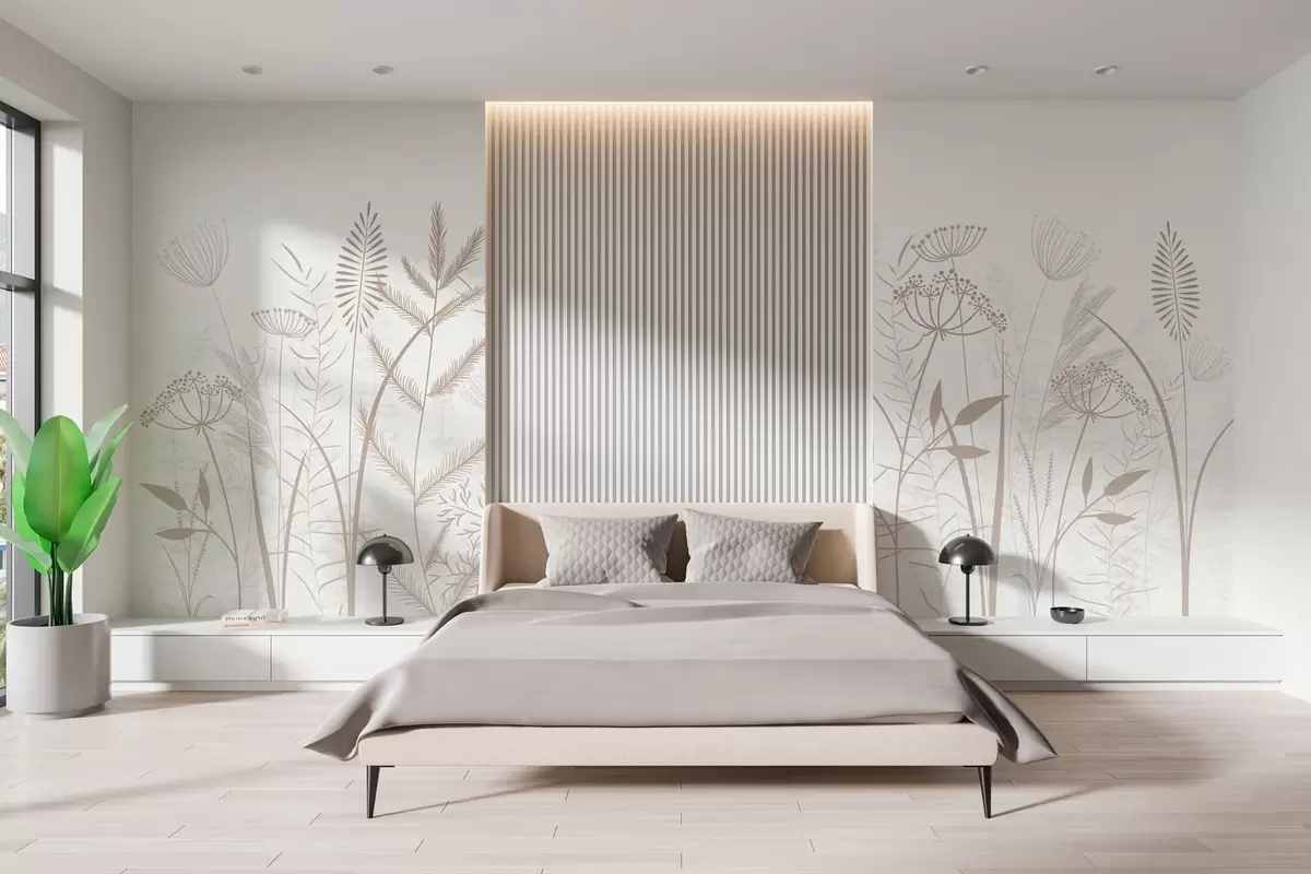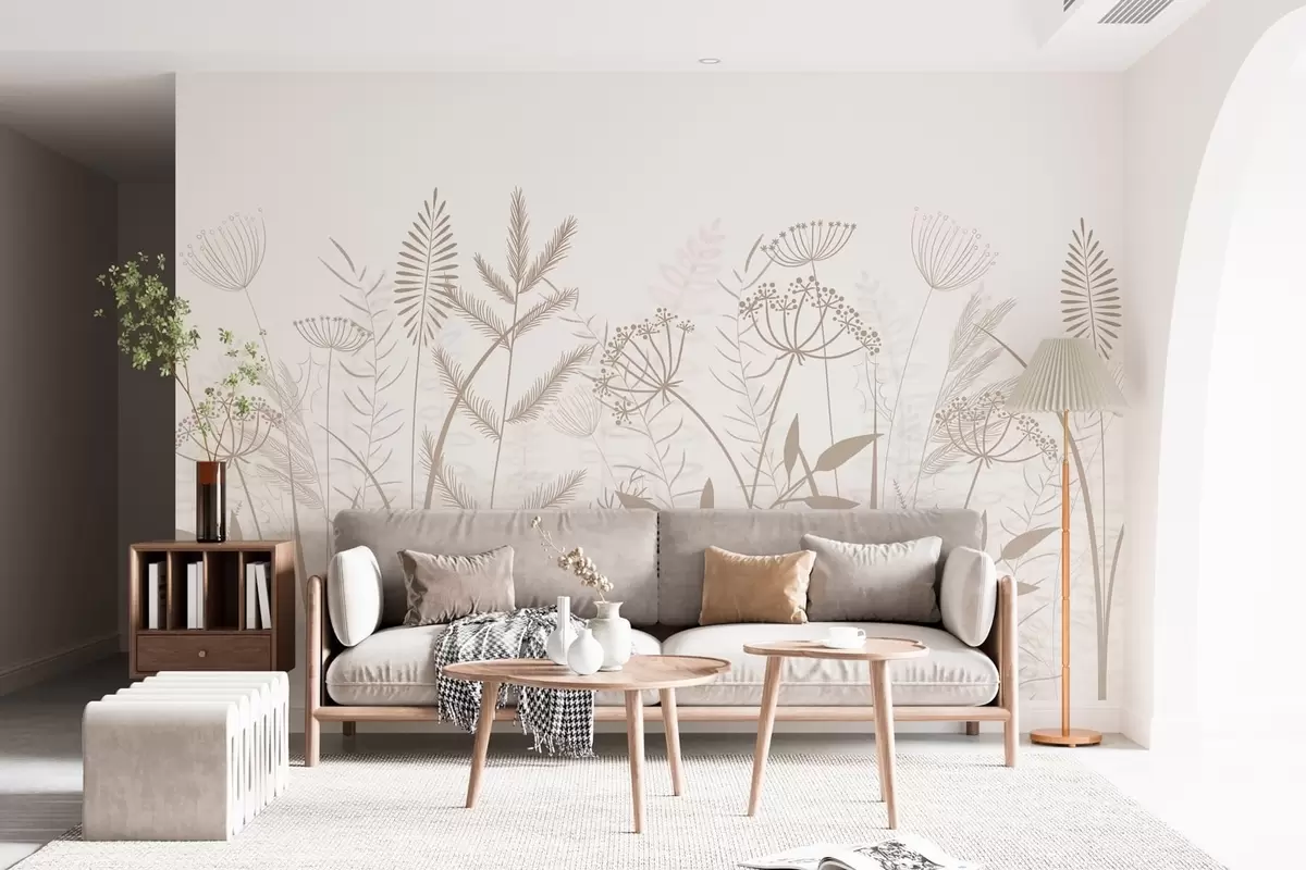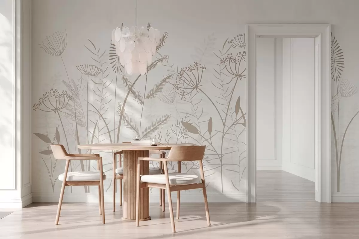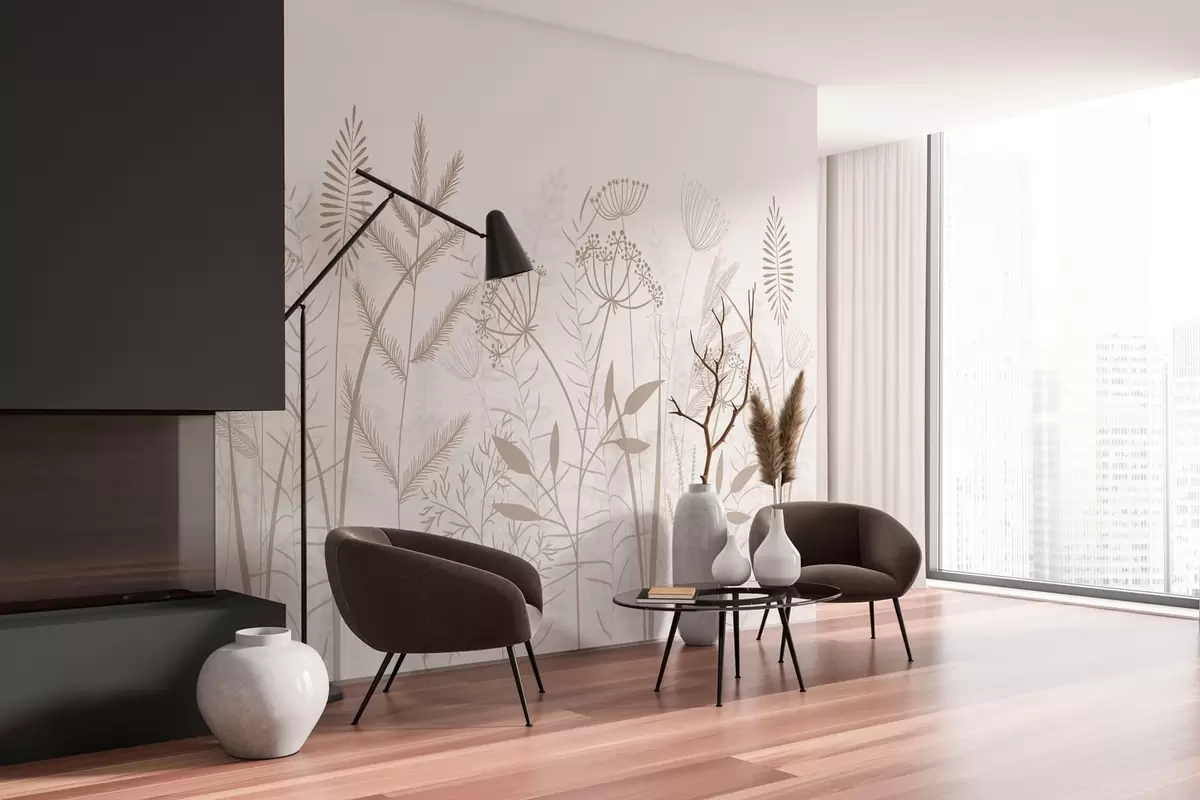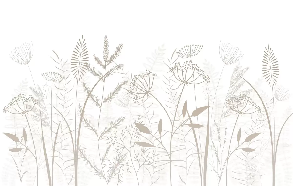 Фотошпалери ніжні, розписані вручну дикі трави та квіти на білому тлі w05383v2