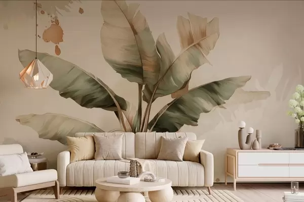 Фотошпалери велике мальовниче сплетіння бананових листів із вкрапленнями у ретро-стилі w05384