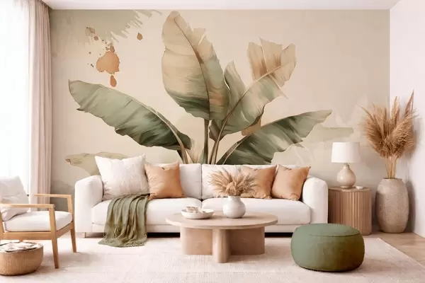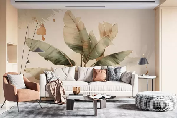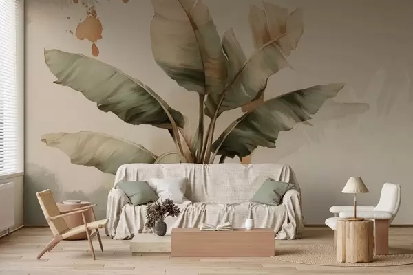 Фотошпалери велике мальовниче сплетіння бананових листів із вкрапленнями у ретро-стилі w05384