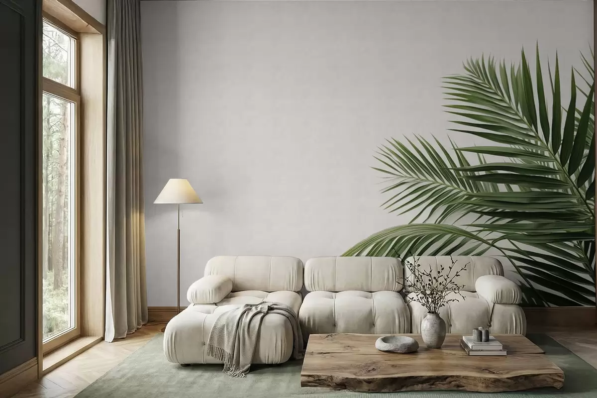 Фотошпалери Зелене пальмове листя на світлому тлі w05391