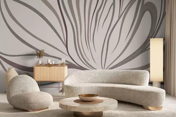 Фотошпалери Абстрактна квітка з лініями у сірих та рожевих тонах w05392