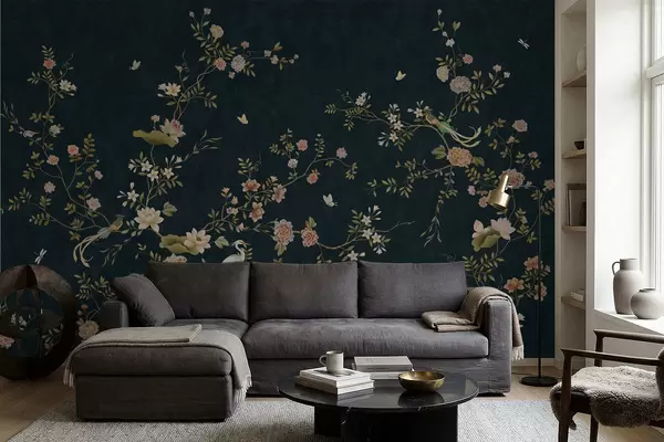 Фотошпалери Квітучі гілки з птахами на темному тлі w05416v3