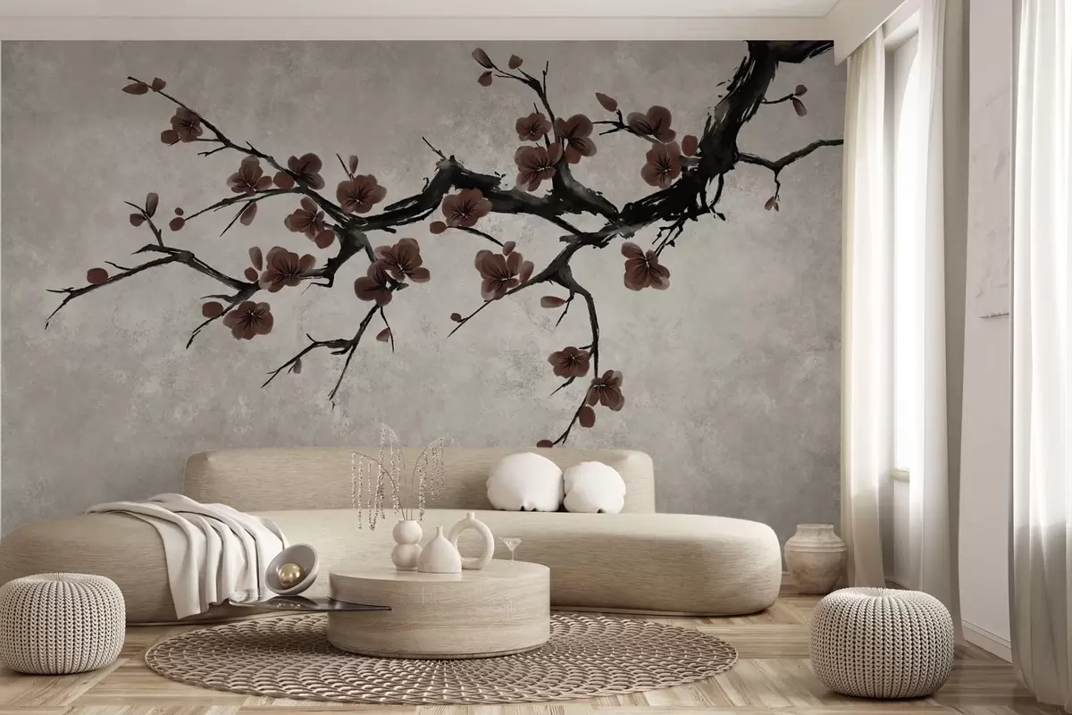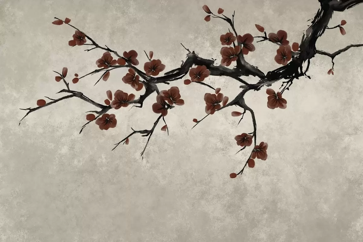 Фотошпалери Гілка з темно-червоними квітками на нейтральному тлі w05425v1