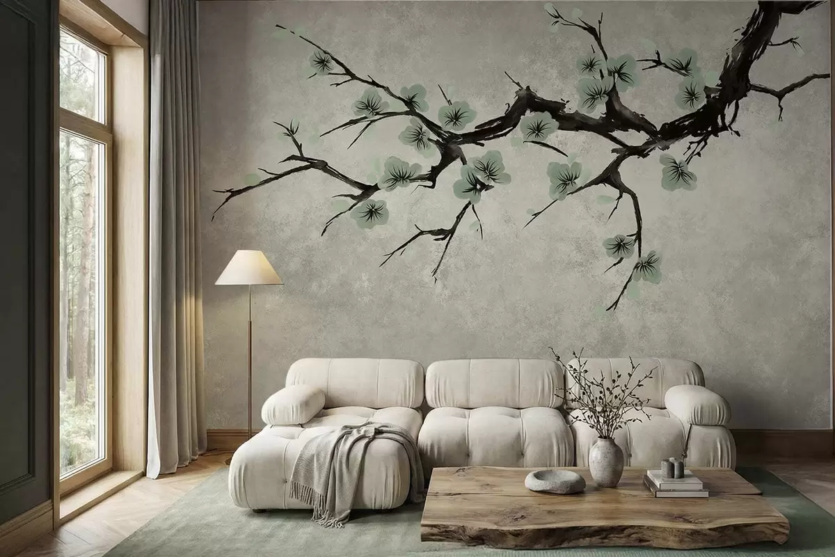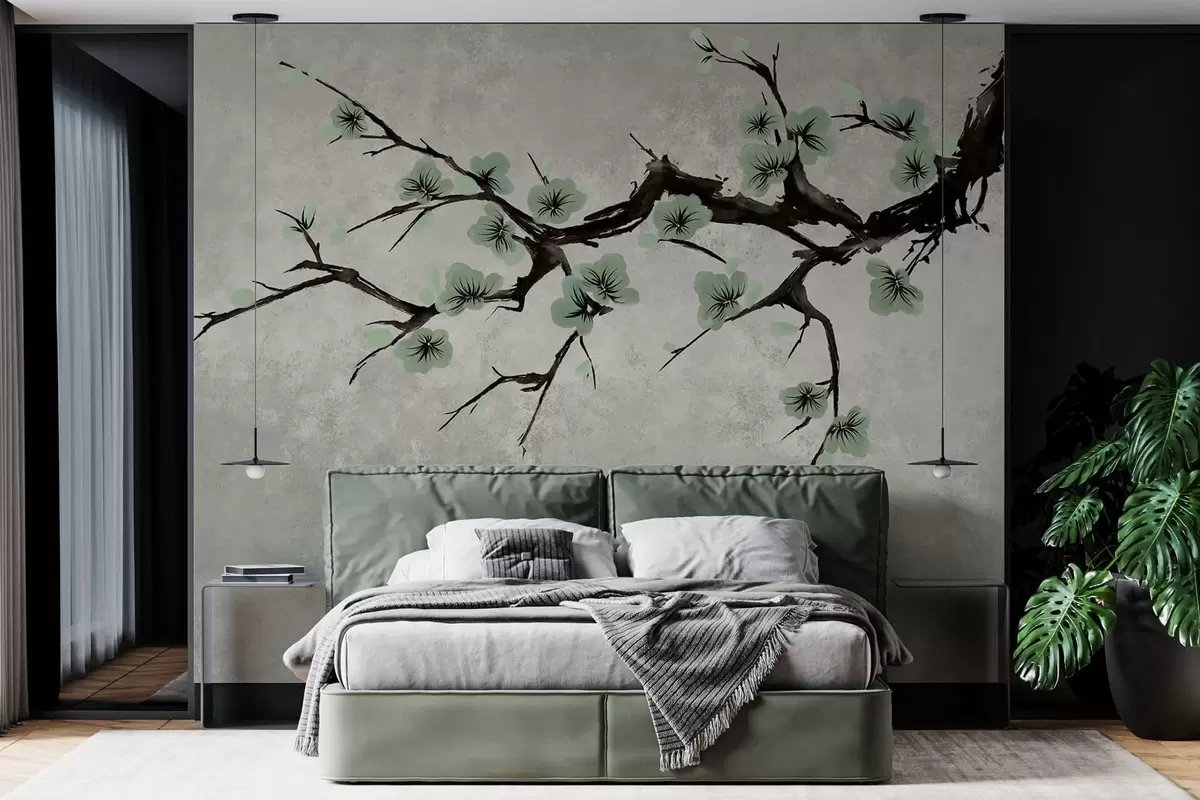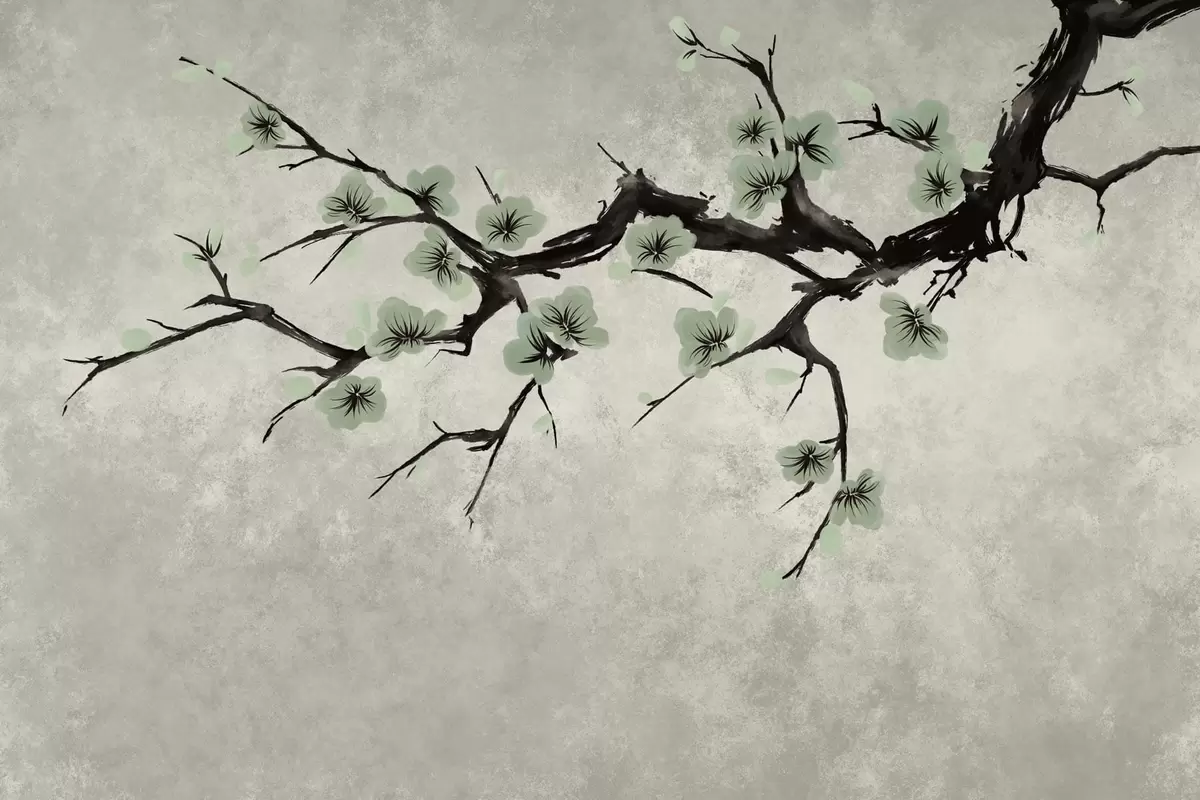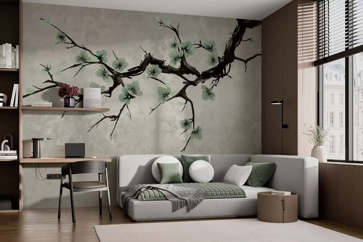 Фотошпалери Гілка із зеленими бутонами у спокійних тонах w05425v2