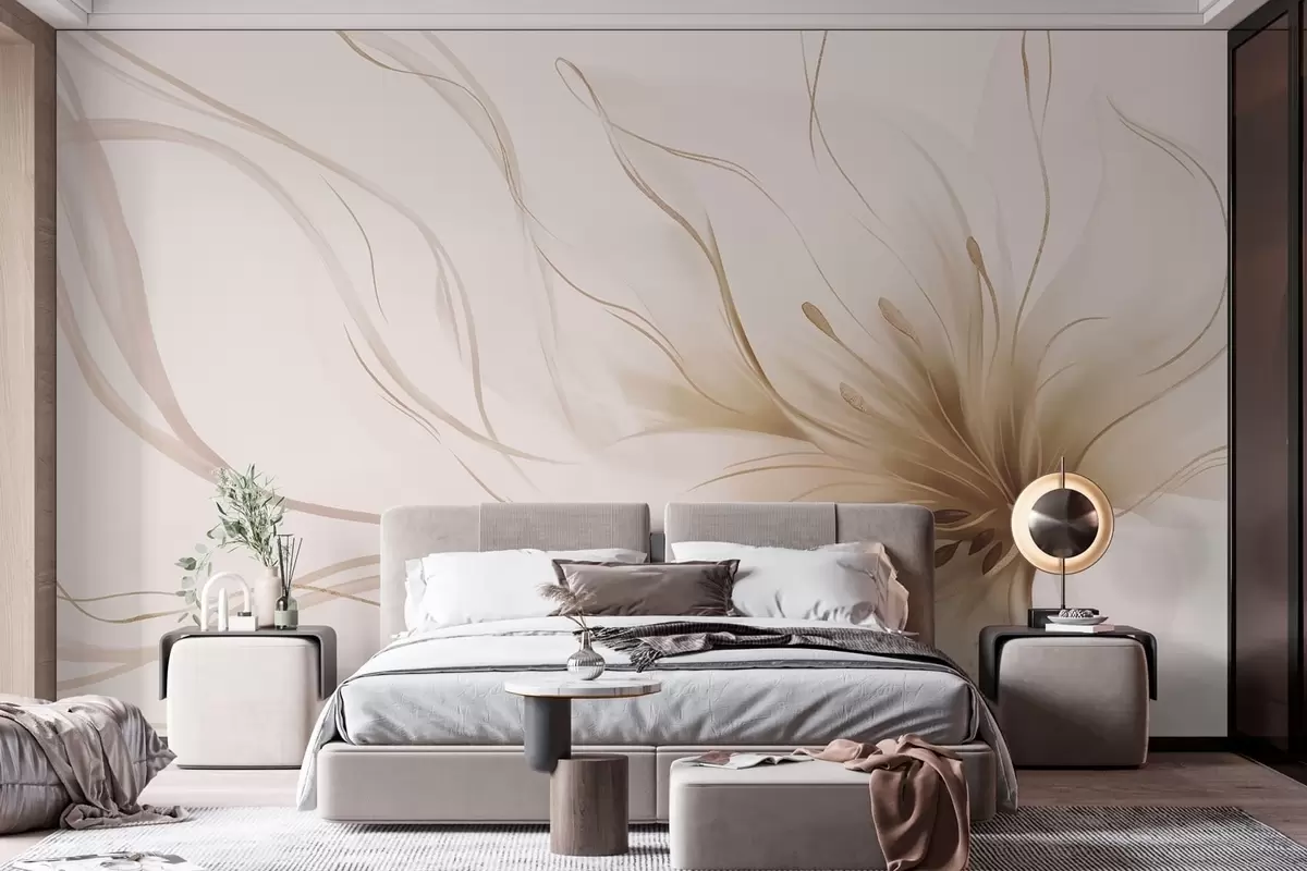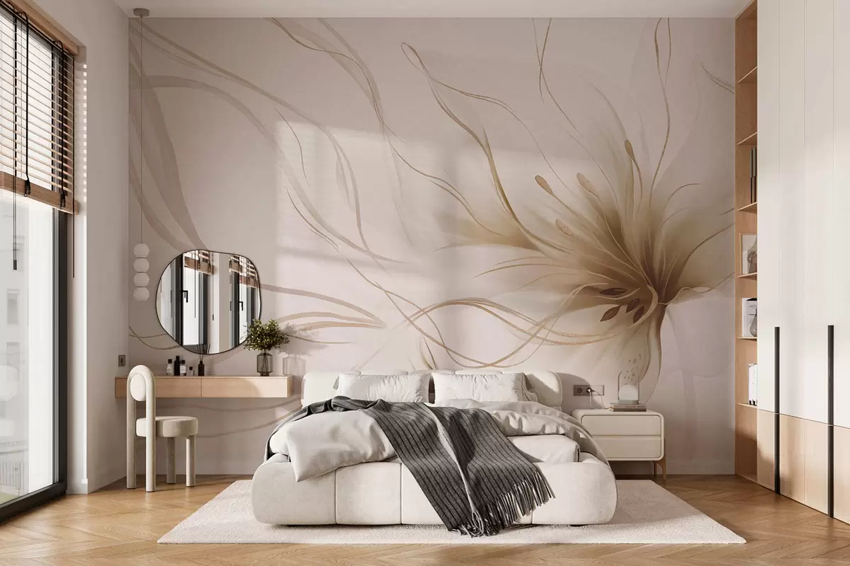 Фотошпалери Абстрактна бежева квітка з плавними лініями у стилі Fluid Art w05428v2