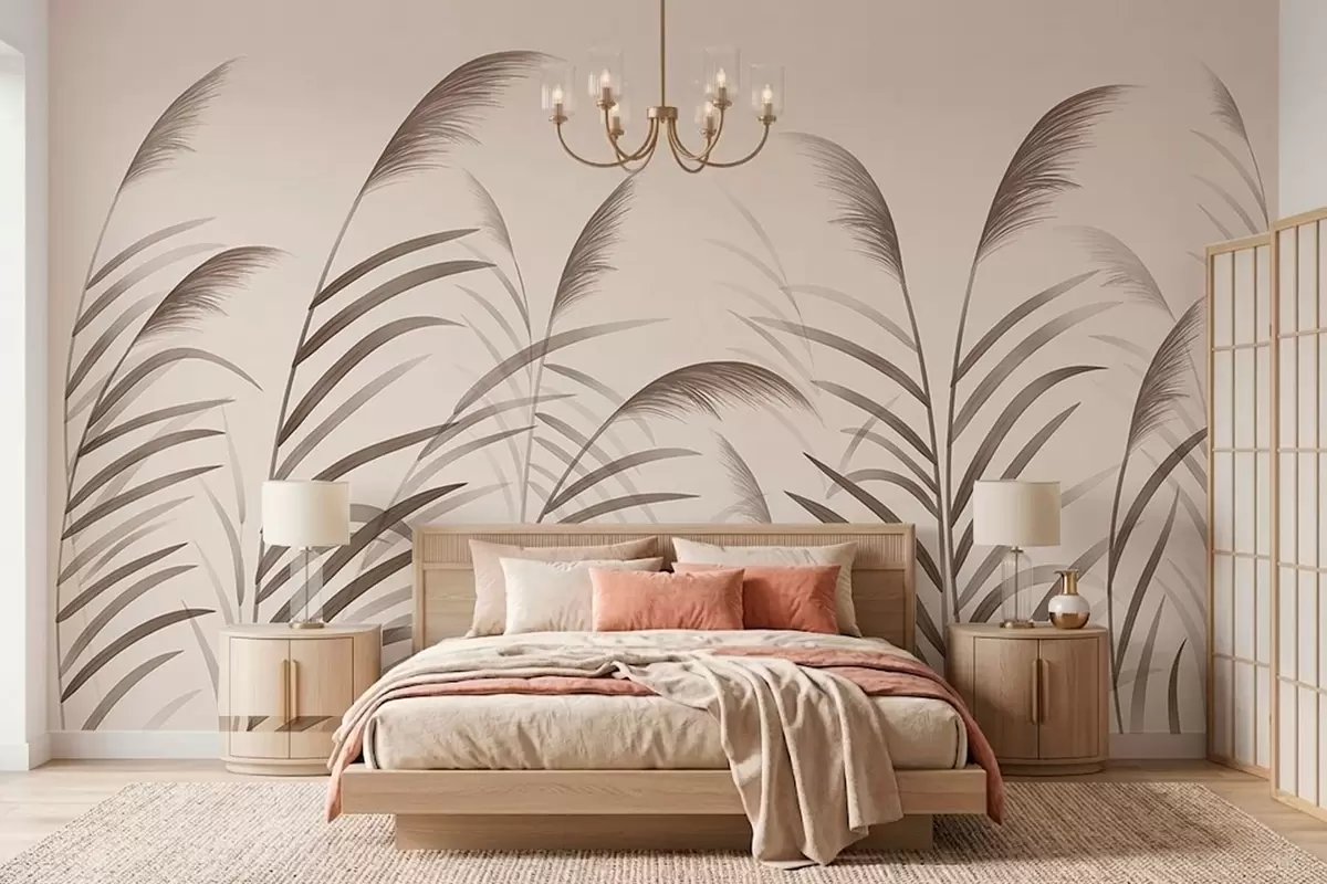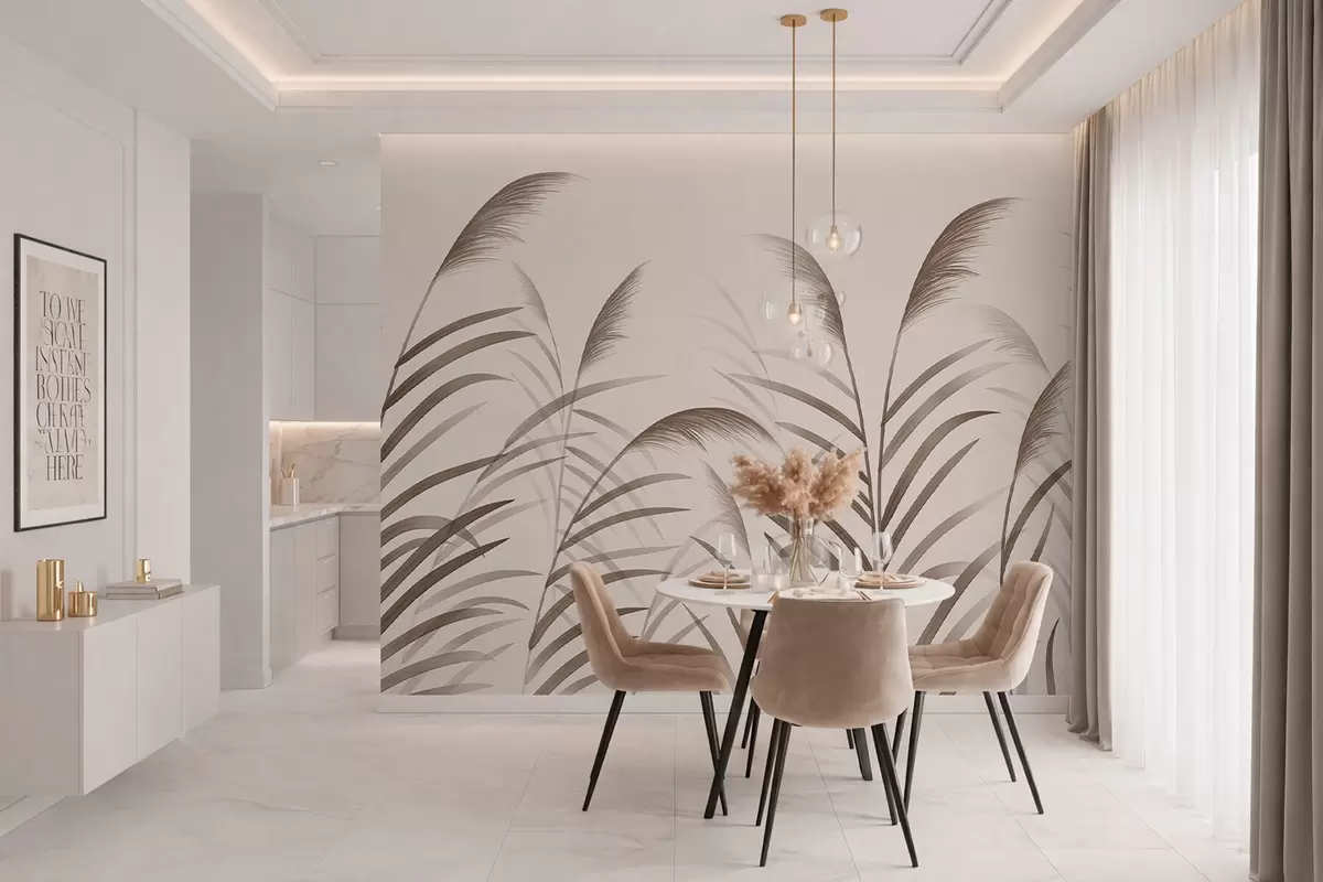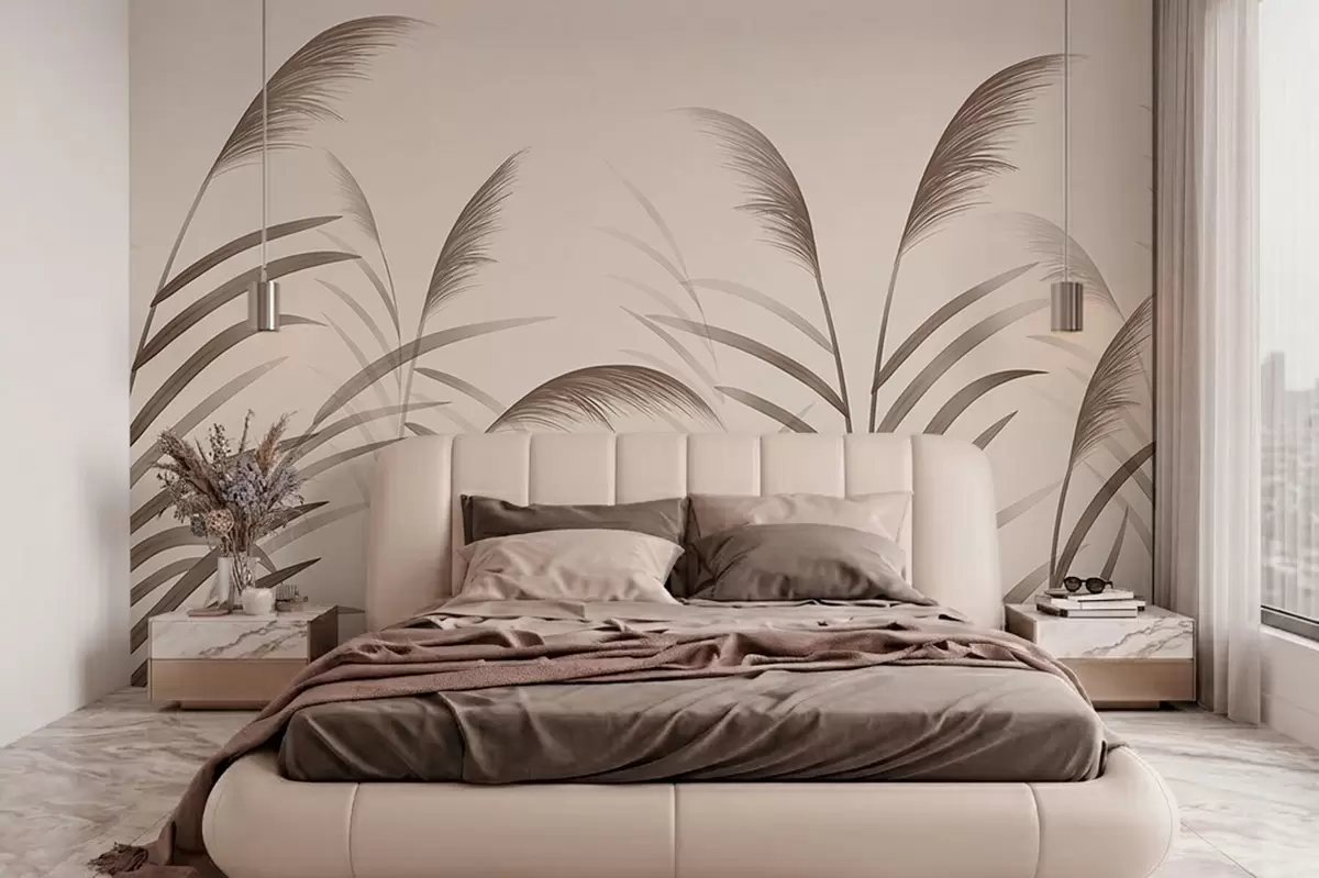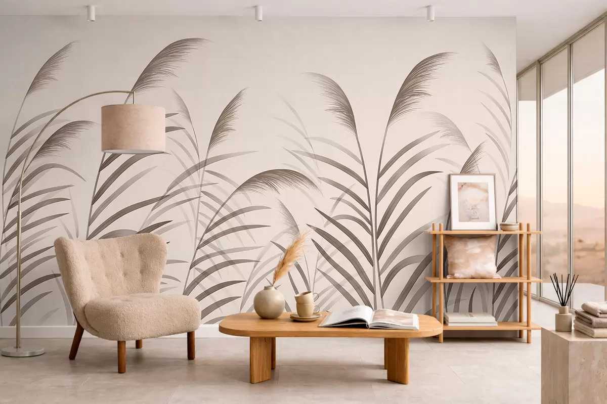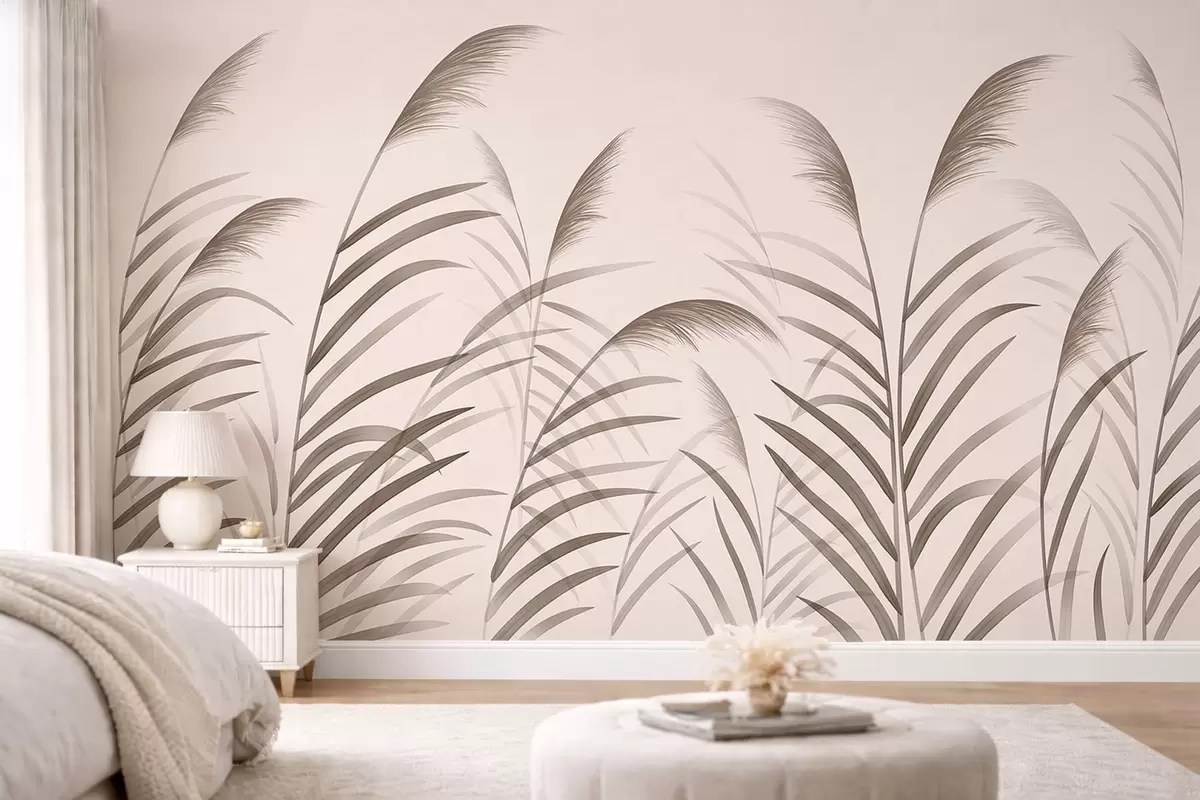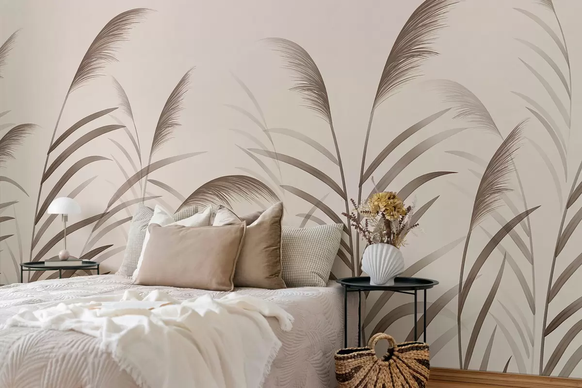 Фотошпалери Мінімалістичні силуети з очерету в бежевих тонах w05432