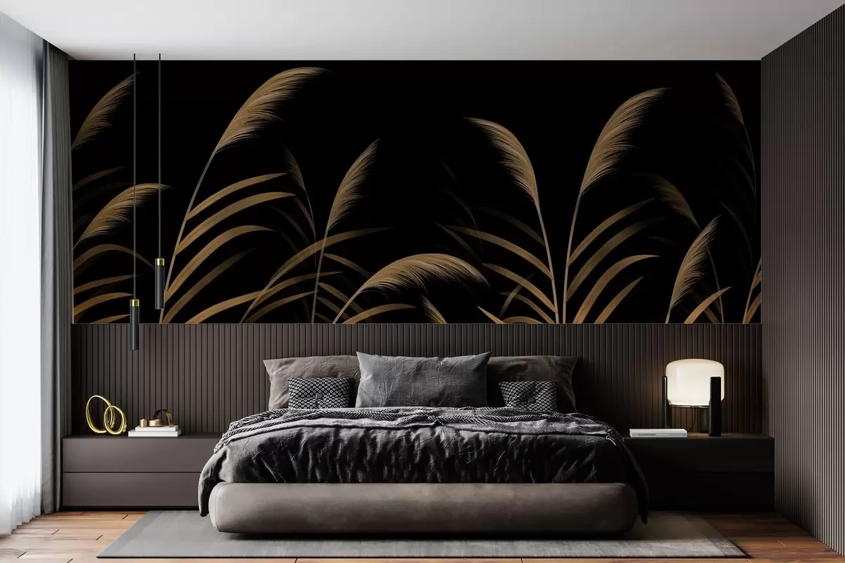 Фотошпалери Трави в стилі мінімалізму на темному тлі з високим контрастом w05432v3