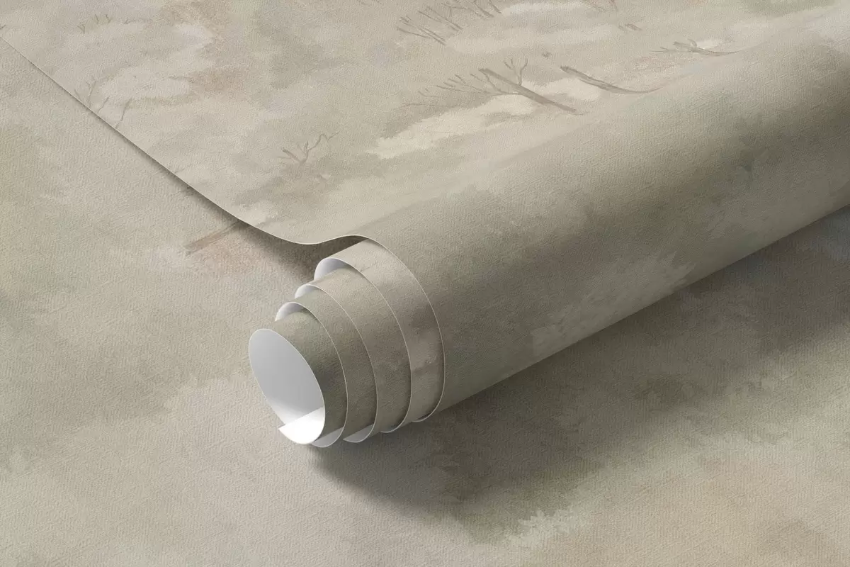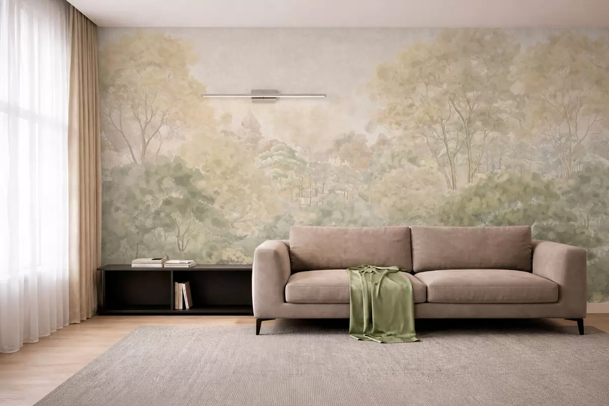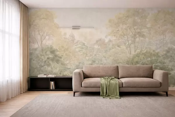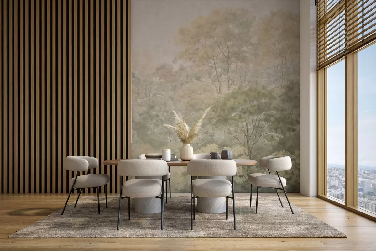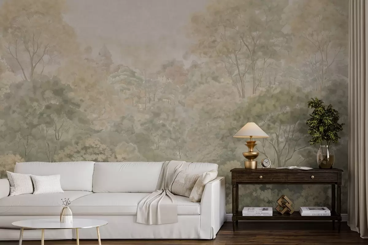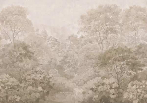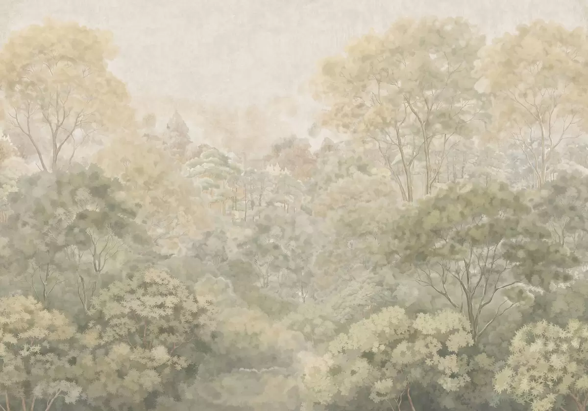 Фотошпалери Ретро-пейзаж лісу у приглушених зелених тонах w05433