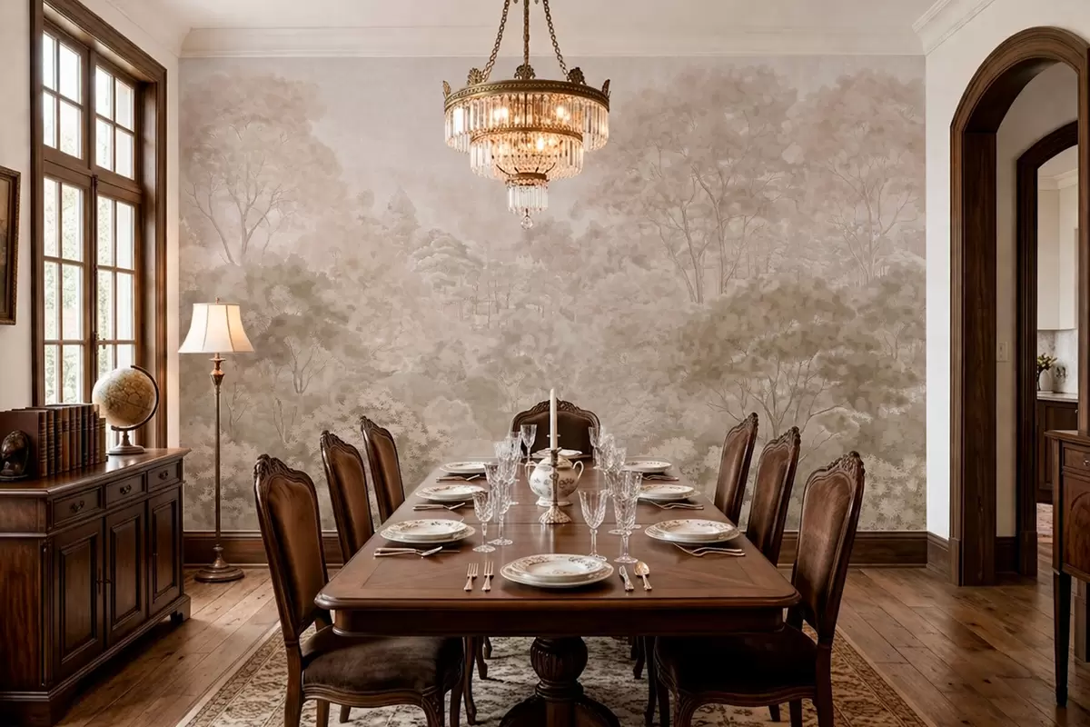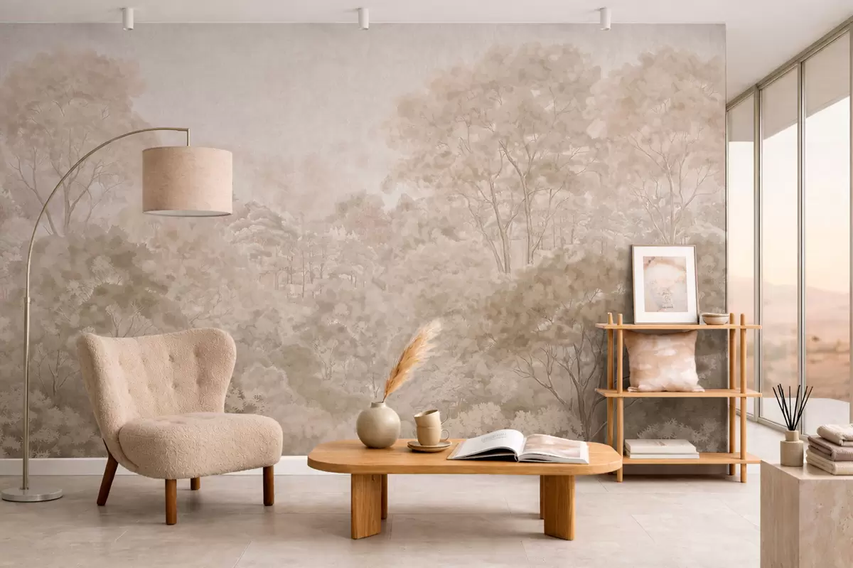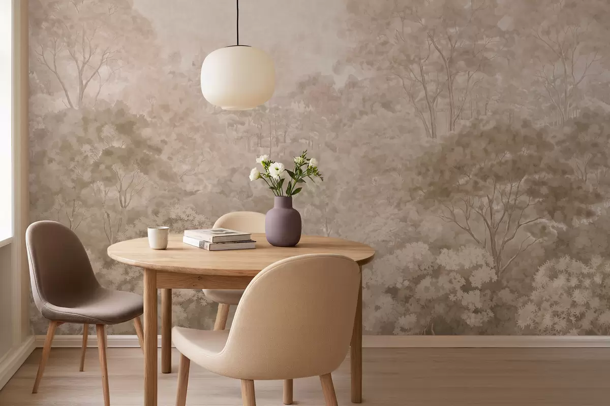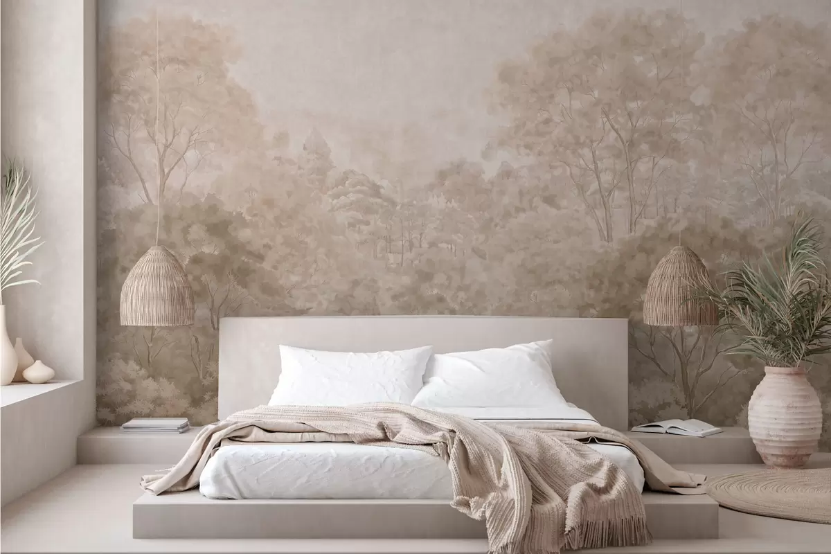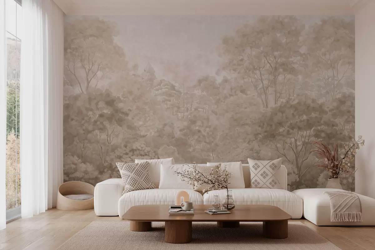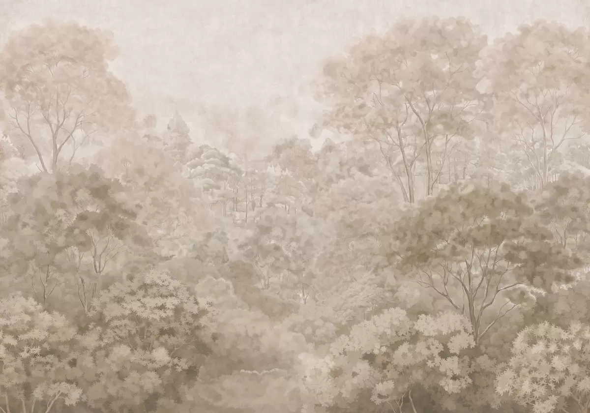 Фотошпалери Ретро-пейзаж лісу в теплих бежевих тонах w05433v1