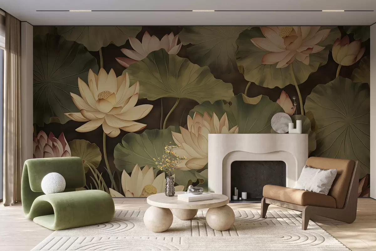Фотошпалери Квіти лотоса у вінтажному стилі w05445