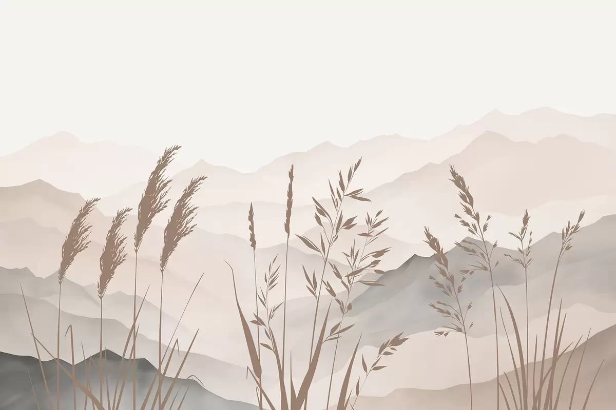 Фотошпалери Силуети трави на тлі гір w05501v1