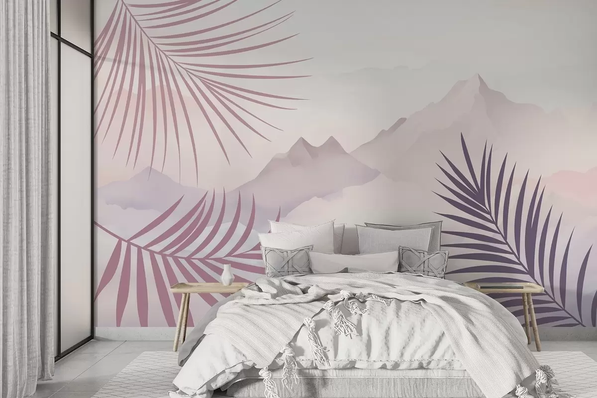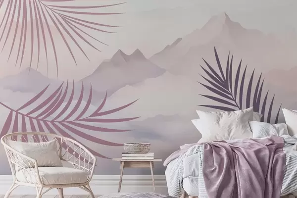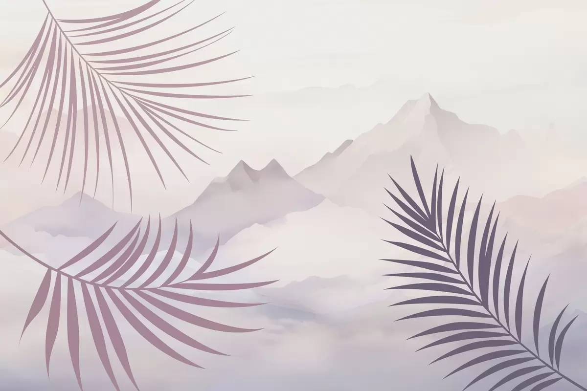 Фотошпалери Пальмове листя на тлі гір w05548v1