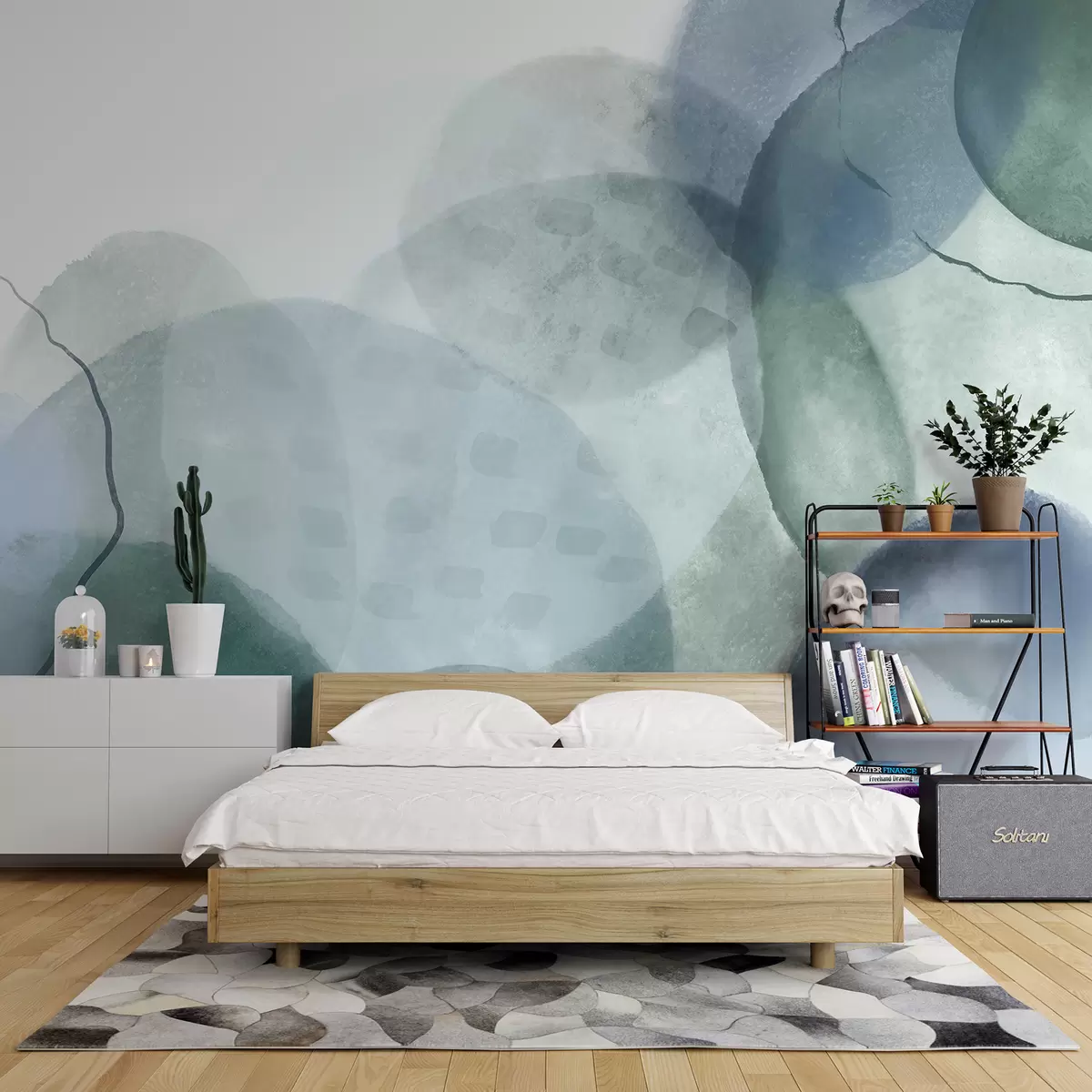 Фотошпалери М’які акварельні абстрактні форми у відтінках синього, зеленого та білого w07926