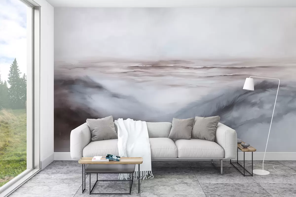 Фотошпалери Абстрактний ландшафт в пастельних тонах, мазки, пляж, море, палітра сірого кольору w08141