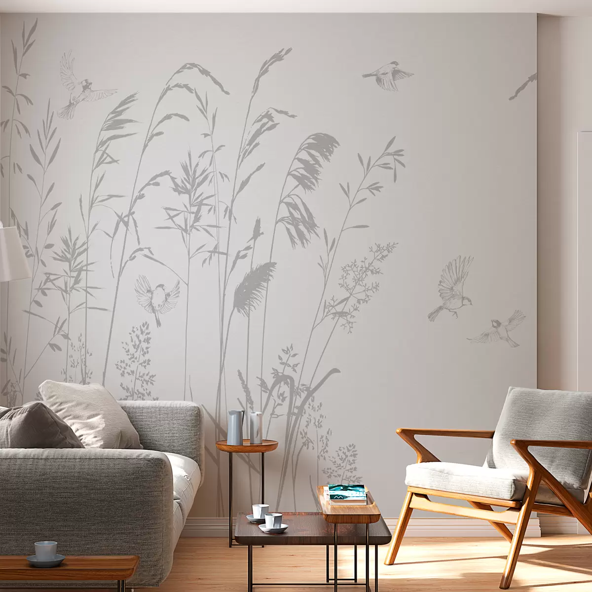 Фотошпалери Рослини та маленьки птахи природа мінімалізм сірий колір w08172v1