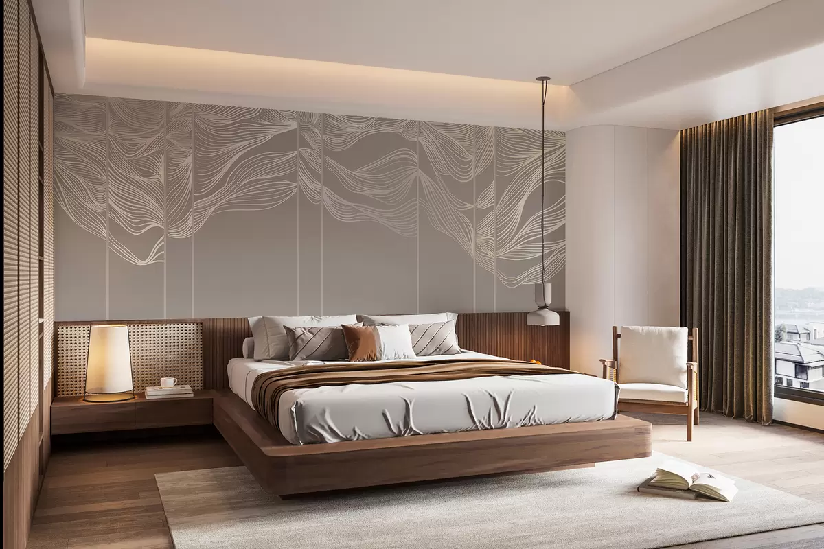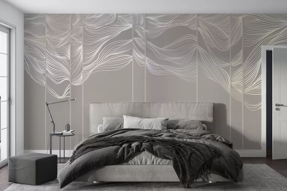 Фотошпалери Плавні білі абстрактні хвилі ліній на світло-коричневому тлі w08263
