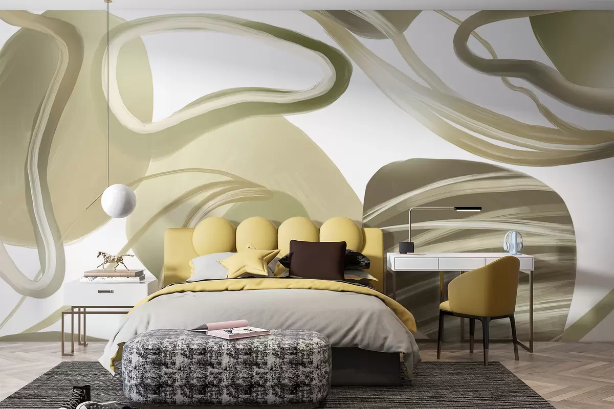 Фотошпалери Абстрактні закручені форми та вигини у відтінках бежевого створюють динамічну та плавну композицію w08279