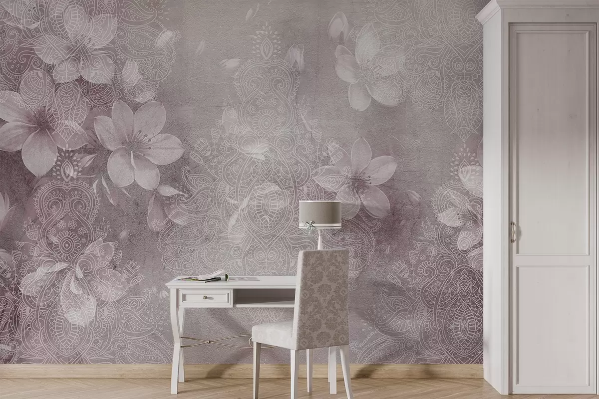 Фотошпалери Малюнок з м'яким фокусом ніжних білих квітів на розмитому фактурному мереживному тлі бордо w08405v2