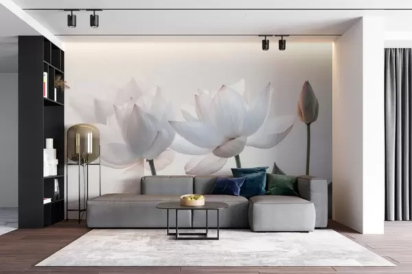 Фотошпалери Ніжні квіти лотоса з пелюстками та листям w08488