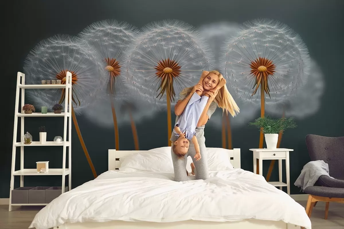 Фотошпалери Повітряні кульбаби на темному природному тлі w08498
