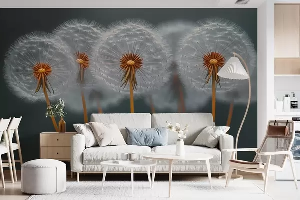 Фотошпалери Повітряні кульбаби на темному природному тлі w08498