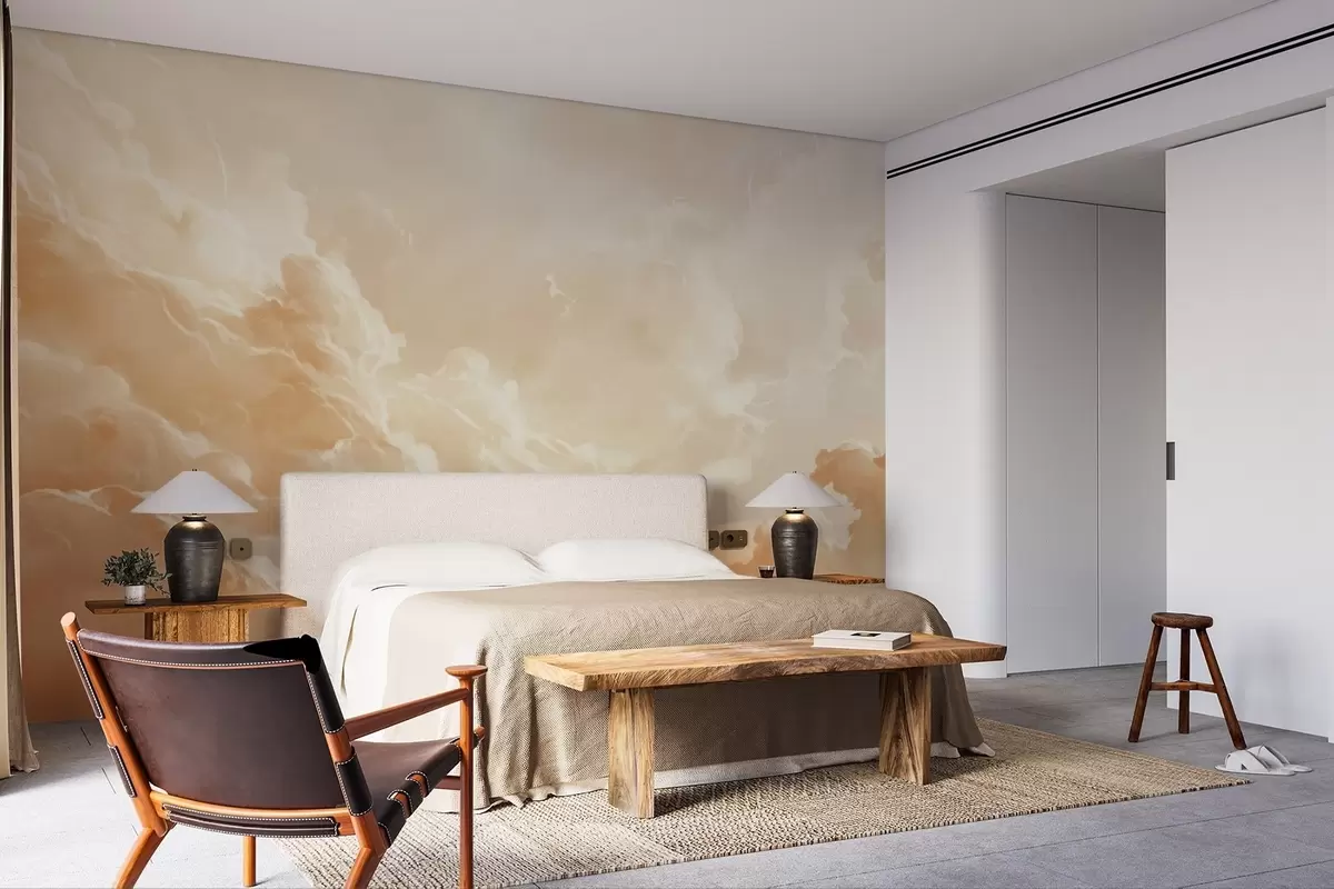 Шпалери Бежеве небо з хмарами в мальовничому стилі w08550