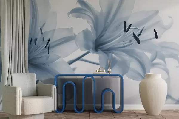 Шпалери М'який фокус крупним планом блакитних мінімалістичних квітів лілії на світлому тлі w08586