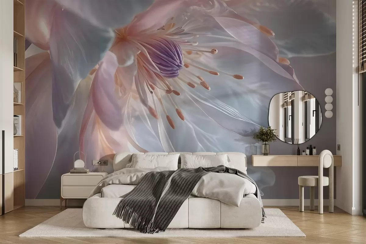 Фотошпалери Крупним планом ніжна квітка пастельного кольору з м'якими напівпрозорими пелюстками та яскравою серединкою w08605