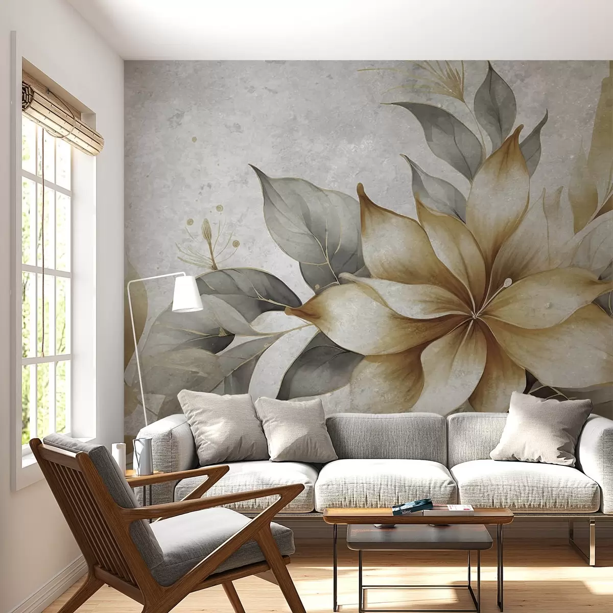 Фотошпалери Гілка квітів на фоні імітації бетону w08623