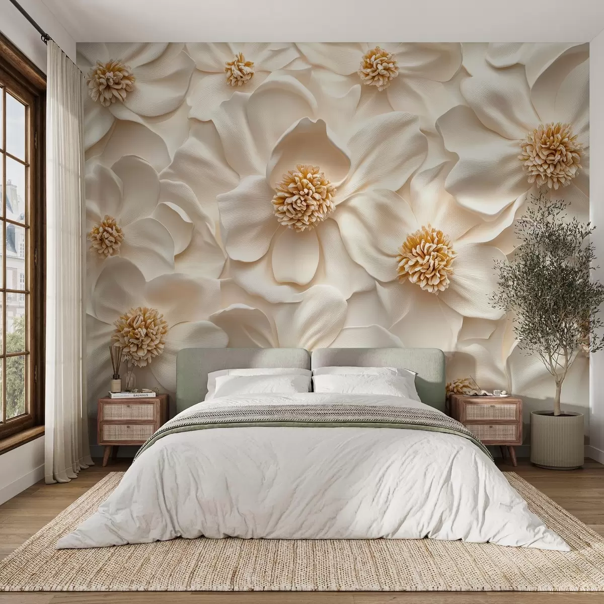 Фотошпалери 3D бежева квіткова композиція з жовтими акцентами w08691