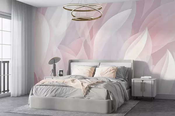 Фотошпалери Абстрактний дизайн із м'якими пелюстковими формами у відтінках рожевого та білого, що створюють ефект багатошаровості w08774