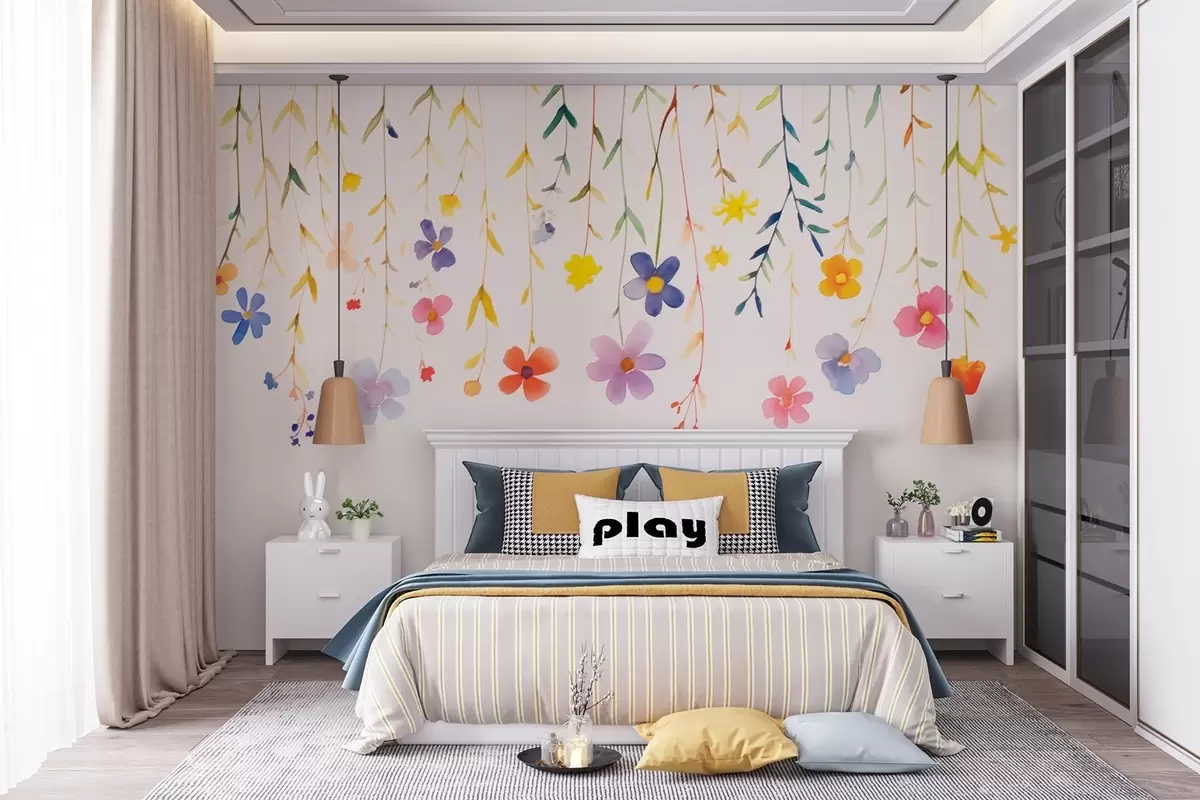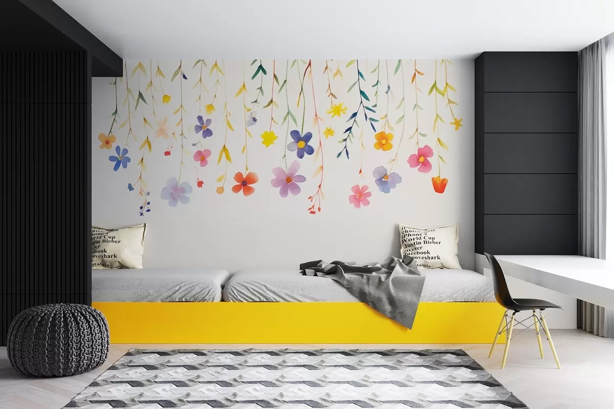 Фотошпалери Польові квіти в акварельному стилі, прості та барвисті w08851
