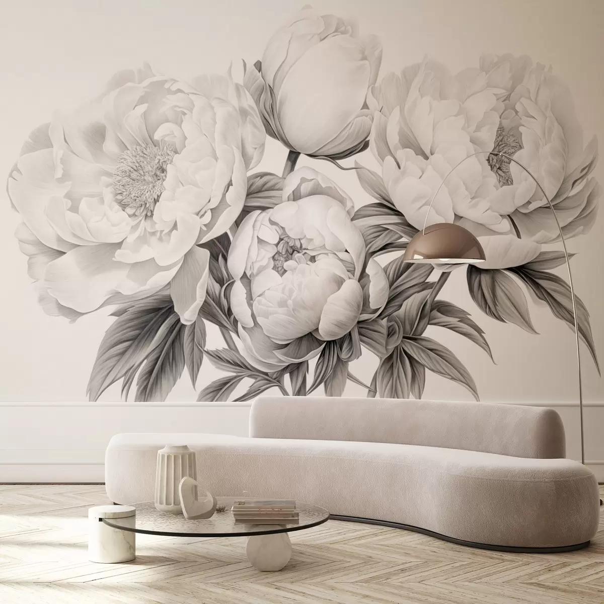 Фотошпалери Чорно-білі півонії в стилі олівцевого малюнка w08852
