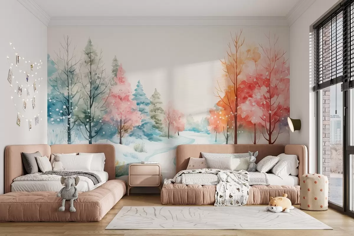 Фотошпалери Живий зимовий ліс у стилі акварелі w08856