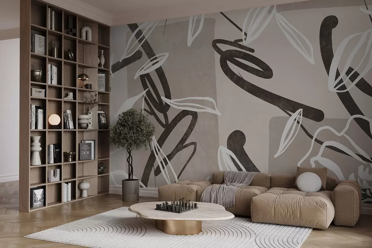 Фотошпалери Абстрактний фактурний сучасний і мінімалістичний дизайн з квітковими елементами в нейтральній бежевій палітрі w08888