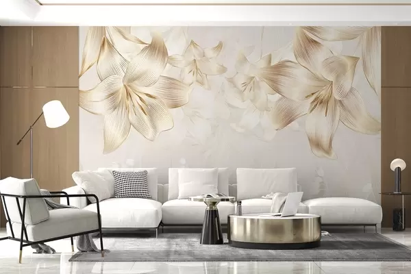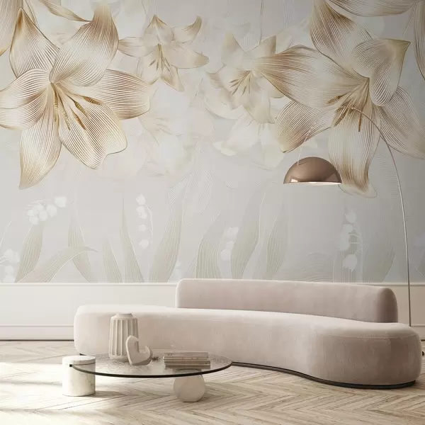 Фотошпалери Жовті лілії зі складними лініями, елегантна квіткова композиція, нейтральна кольорова палітра w08912