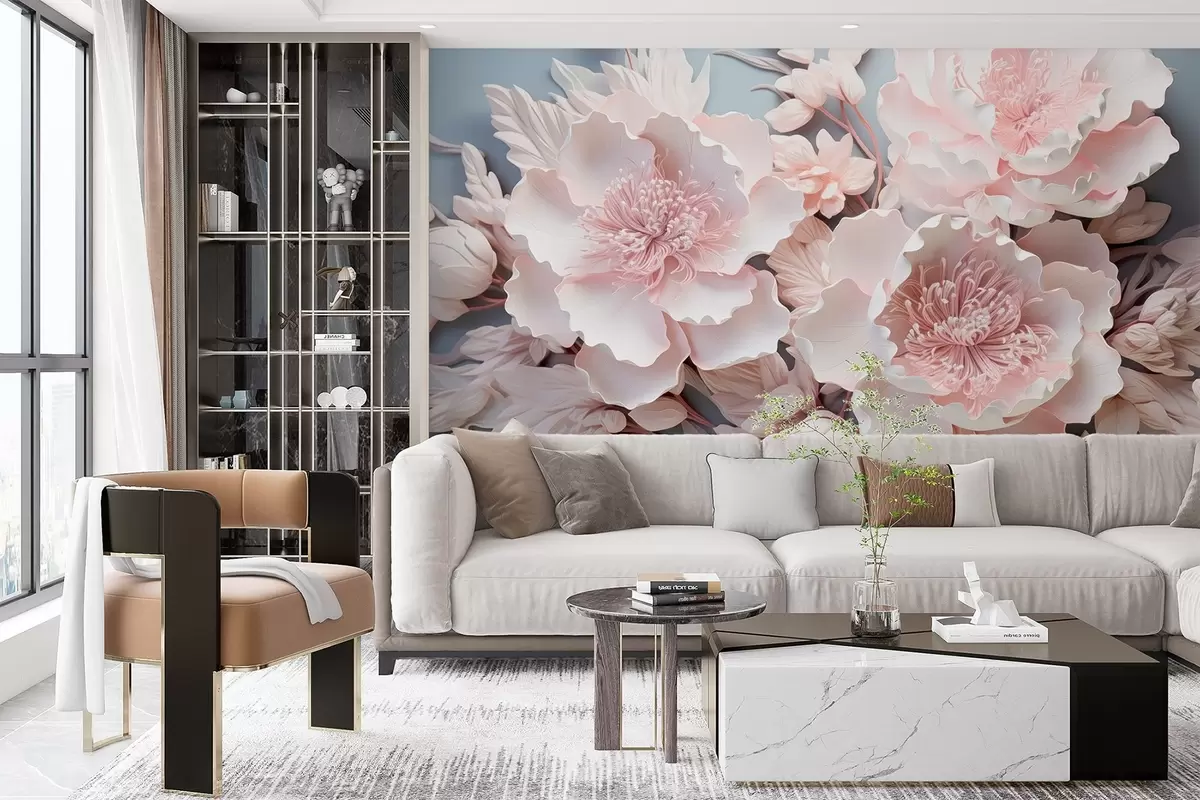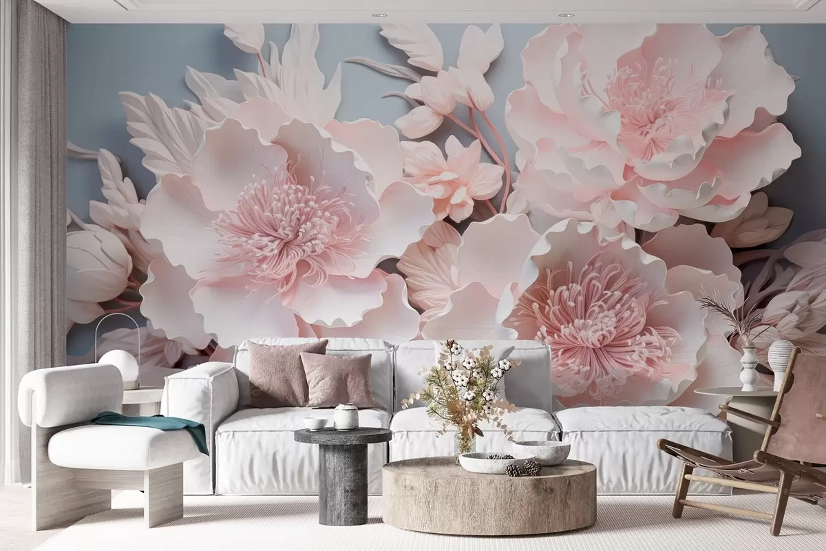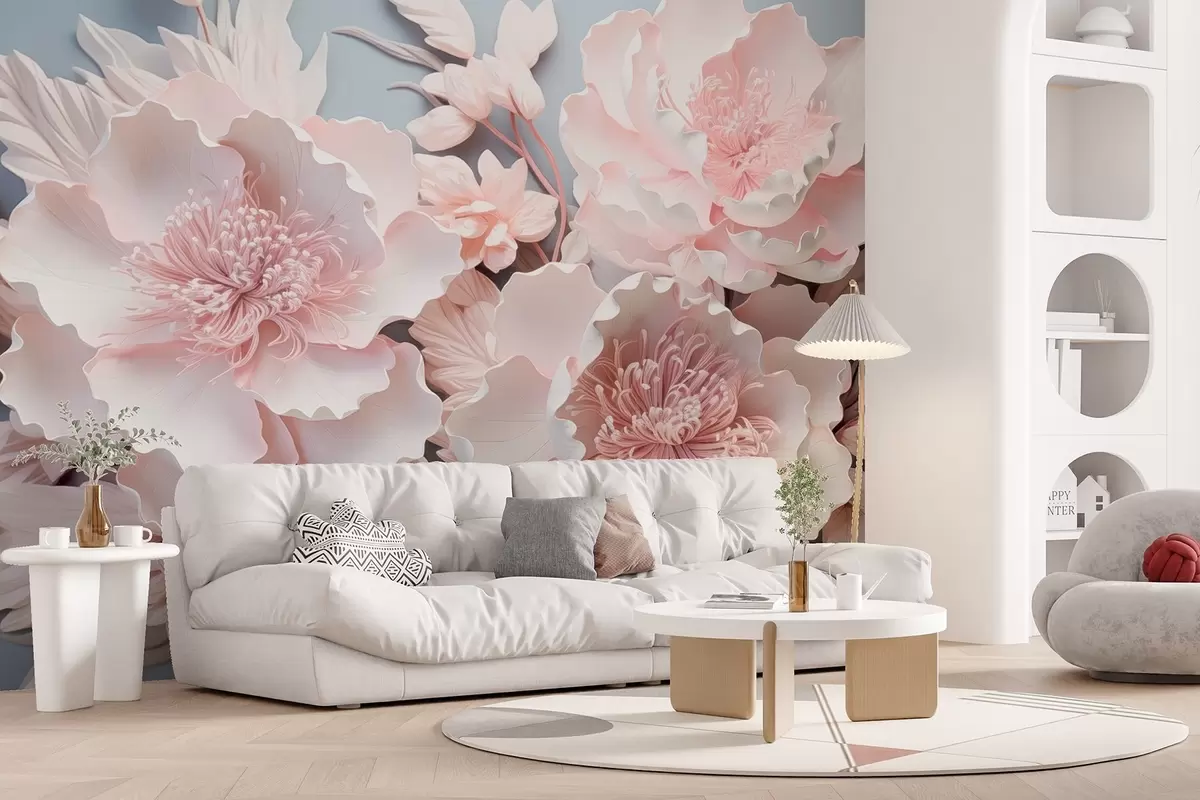 Фотошпалери Об'ємні рожеві квіти в ніжних відтінках w08988