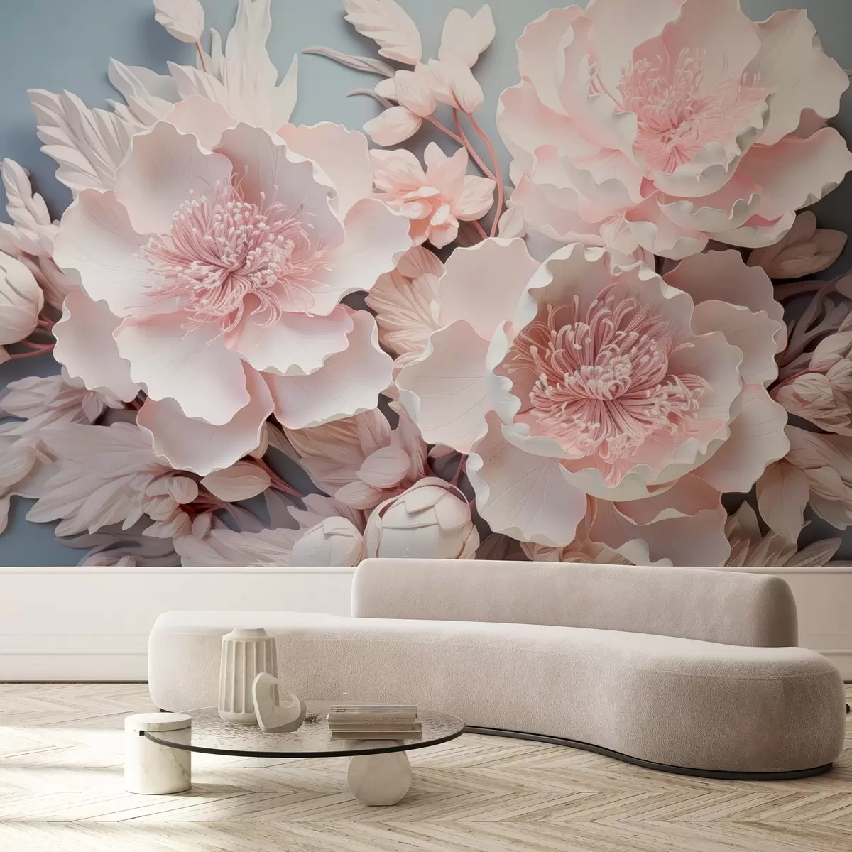 Фотошпалери Об'ємні рожеві квіти в ніжних відтінках w08988