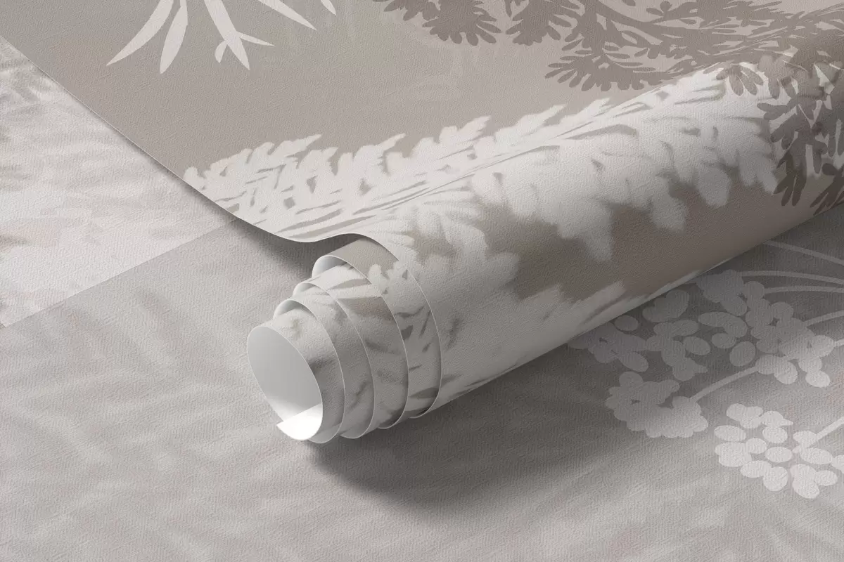 Фотошпалери Листя папороті в бежево-білих тонах, розташоване вертикальними смужками, створюючи ботанічний і мінімалістичний принт, м'які і приглушені кольори w09007