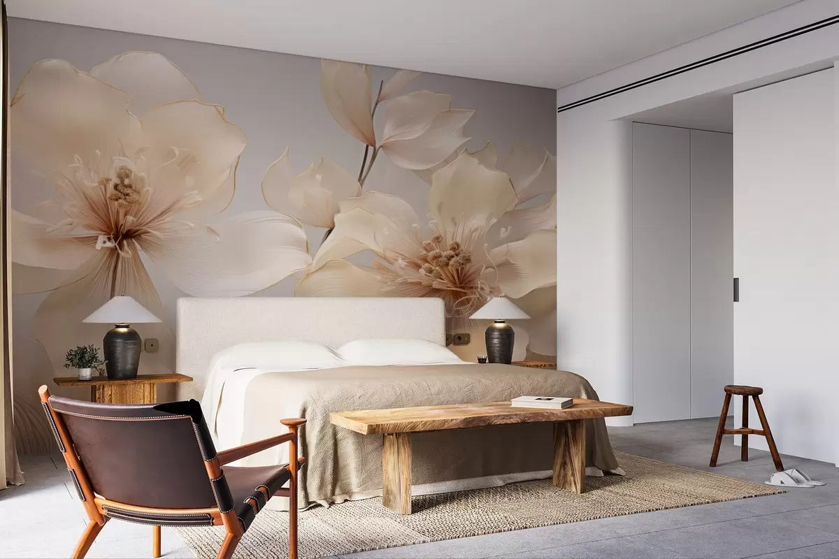 Фотошпалери Бежеві повітряні квіти в м'яких тонах w09016