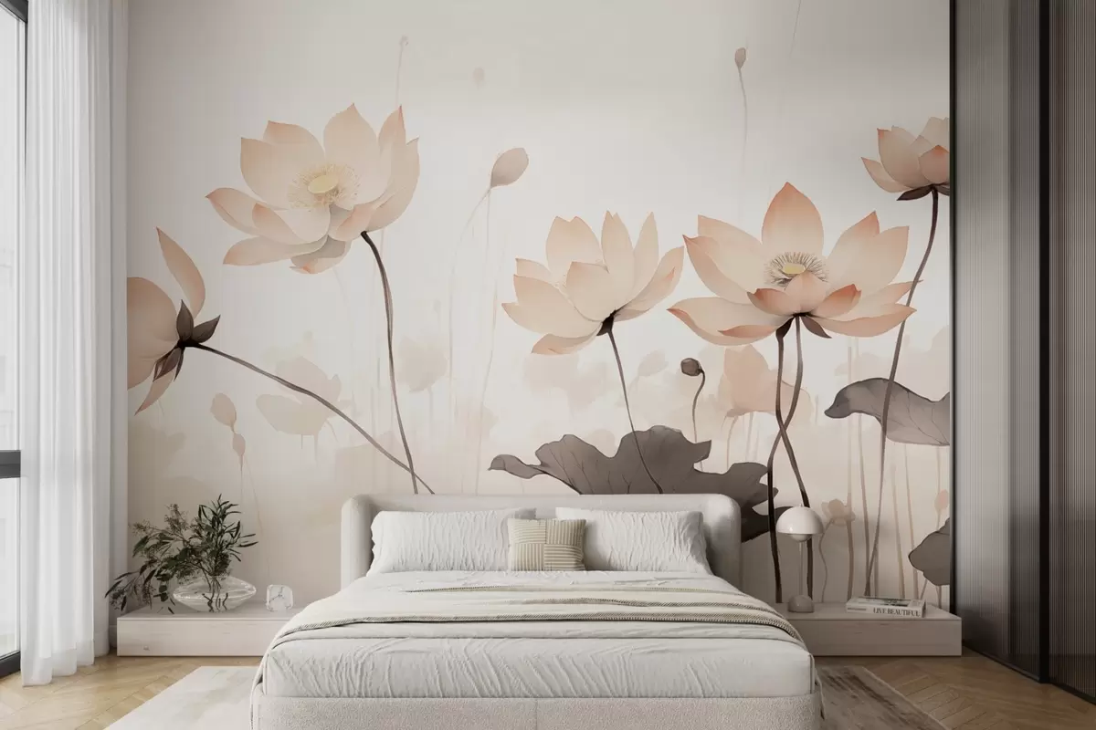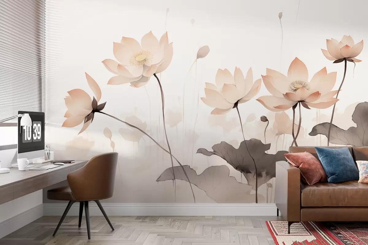 Фотошпалери Латаття в ніжних світлих тонах у стилі акварелі w09035