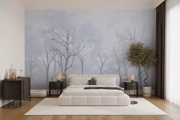 Фотошпалери Монохромні вінтажні дерева в тумані w09065v2