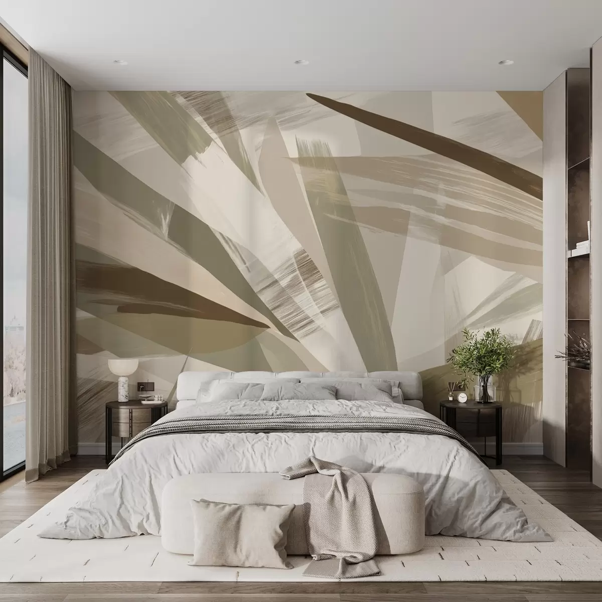 Фотошпалери Абстрактне листя в зелених і бежевих тонах w09091