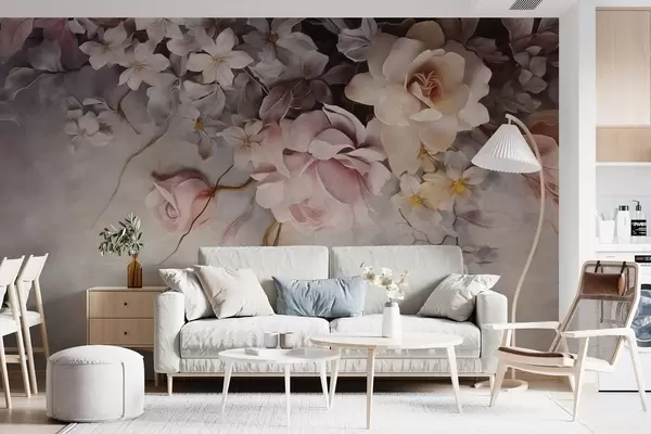 Шпалери Великі квіти, що звисають зі стіни на бетонному тлі w09184