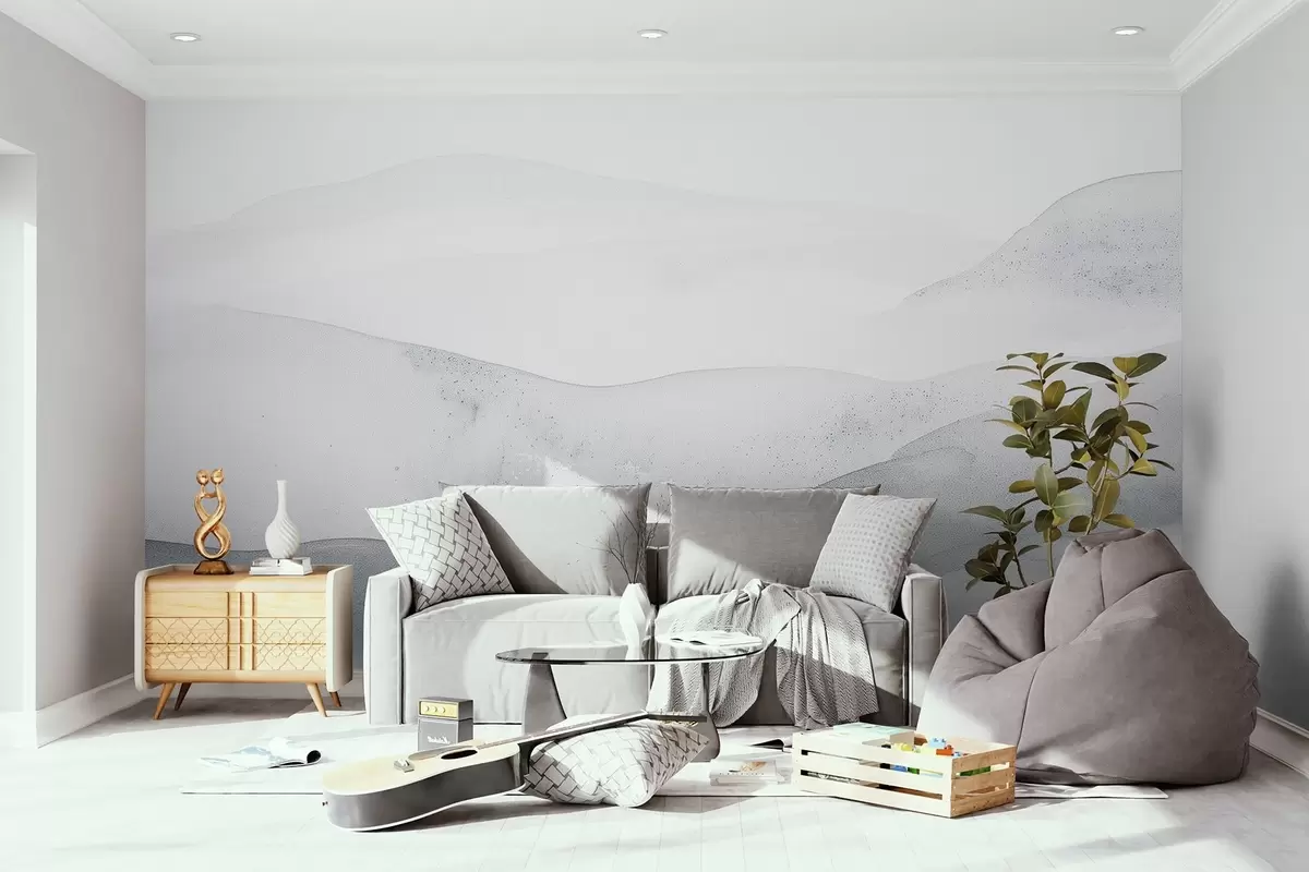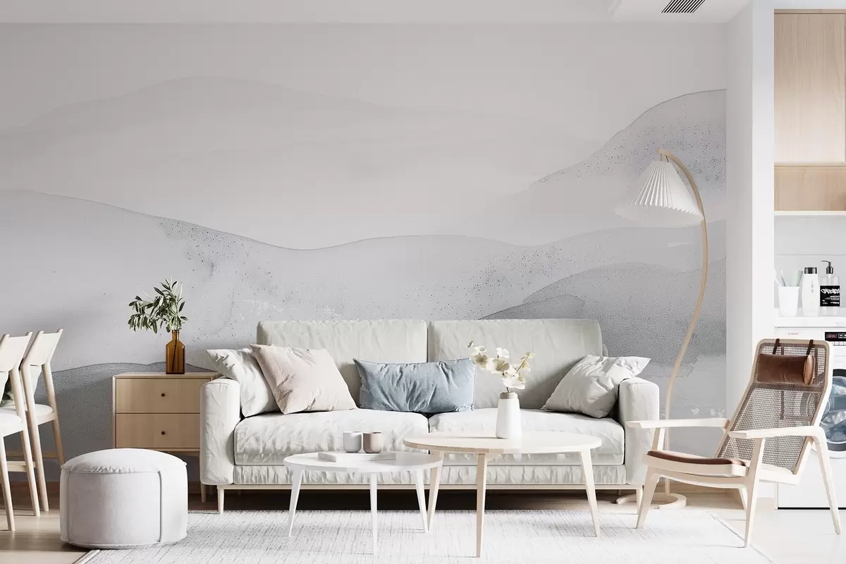 Фотошпалери Мінімалістичні туманні гори в ніжно-блакитних відтінках w09223v2